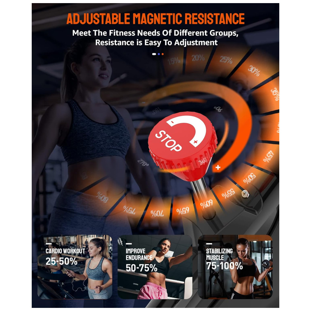 Bicicleta de exercício. Ajuste de resistência à pastilha de freio magnético ajustável acionamento de correia