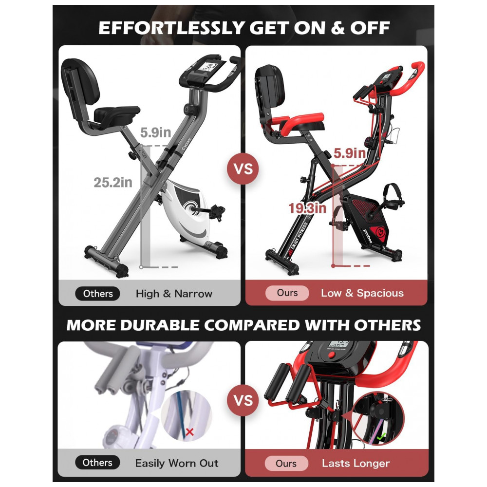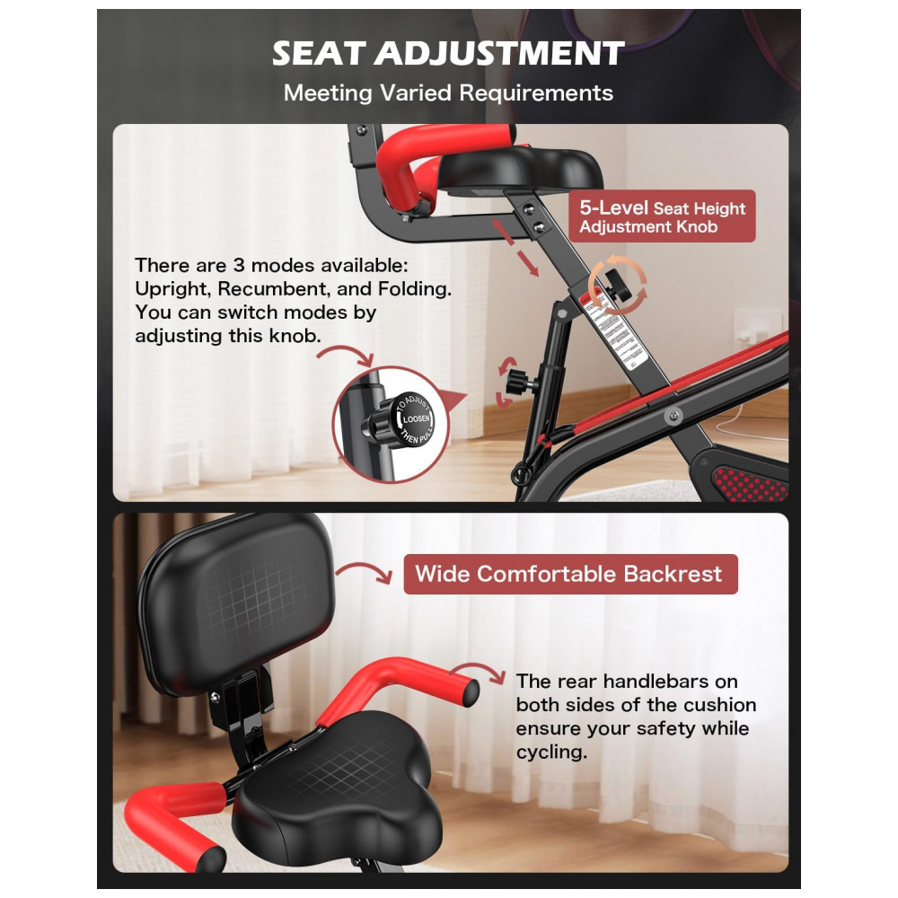 It offers a seamless integration of functionality and comfort, enhancing your workout relaxation Ergonomic Handrail Grips Featuring a unique handrail design, the updated angles at both ends of the handrail and the upgraded handrail covers provide enhanced comfort, offering you an additional grip position Multifunctional Folding Exercise Bike for Home Workout The upright posture of this bike provides you with highintensity exercise, helping you burn more calories
