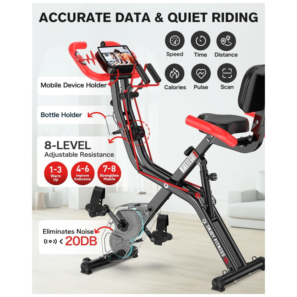4in1 Bicicleta de exercício dobrável para o treino doméstico A postura vertical desta moto fornece exercícios de alta intensidade, ajudando você a queimar mais calorias
