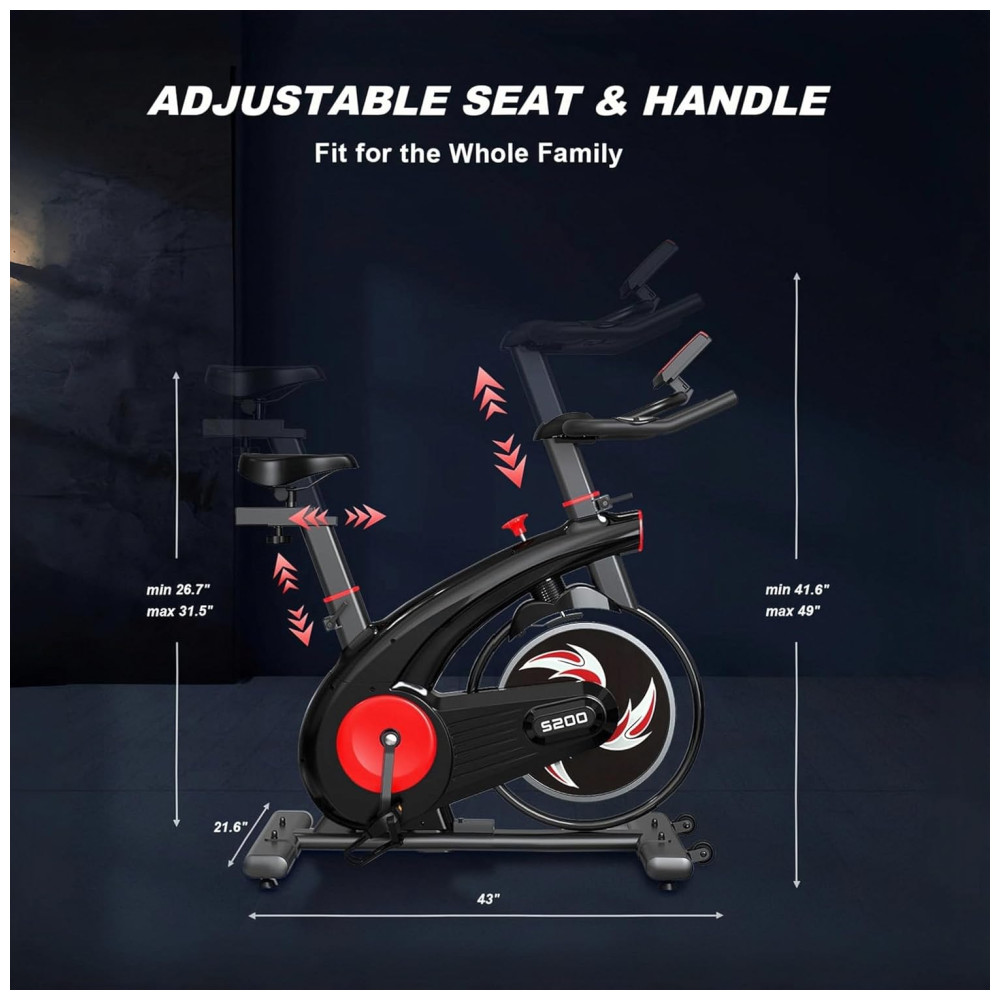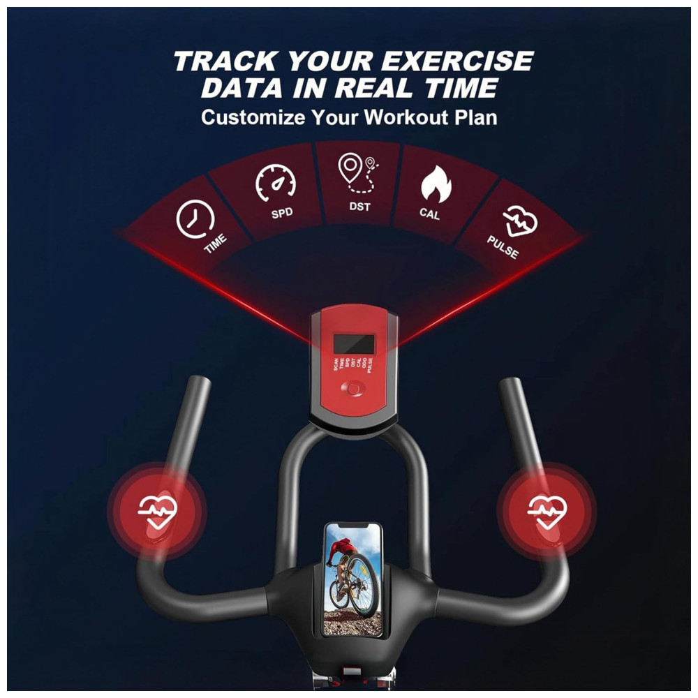 Desfrute de treinos intensos em casa com a Bicicleta de Exercício Maicifi. Com ajuste confortável e personalizado, essa bicicleta estacionária oferece handlebars antiderrapantes ajustáveis em 2 direções e um assento acolchoado ajustável em 4 direções, garantindo um ajuste confortável. Monitore seu progresso com o monitor digital que rastreia métricas essenciais como duração do exercício, velocidade, pulsação, calorias queimadas e odômetro. Com operação silenciosa e suave, suportada por um volante de ferro inoxidável e correia silenciosa, essa bicicleta proporciona um ambiente de treino tranquilo. Feita de aço inoxidável durável, a estrutura triangular garante estabilidade para um passeio seguro e firme, suportando até 120kg. Com treinos personalizados e inspiradores de treinadores em seu telefone ou tablet, essa bicicleta dobrável é ideal para espaços compactos. Cor: Vermelho e Preto.