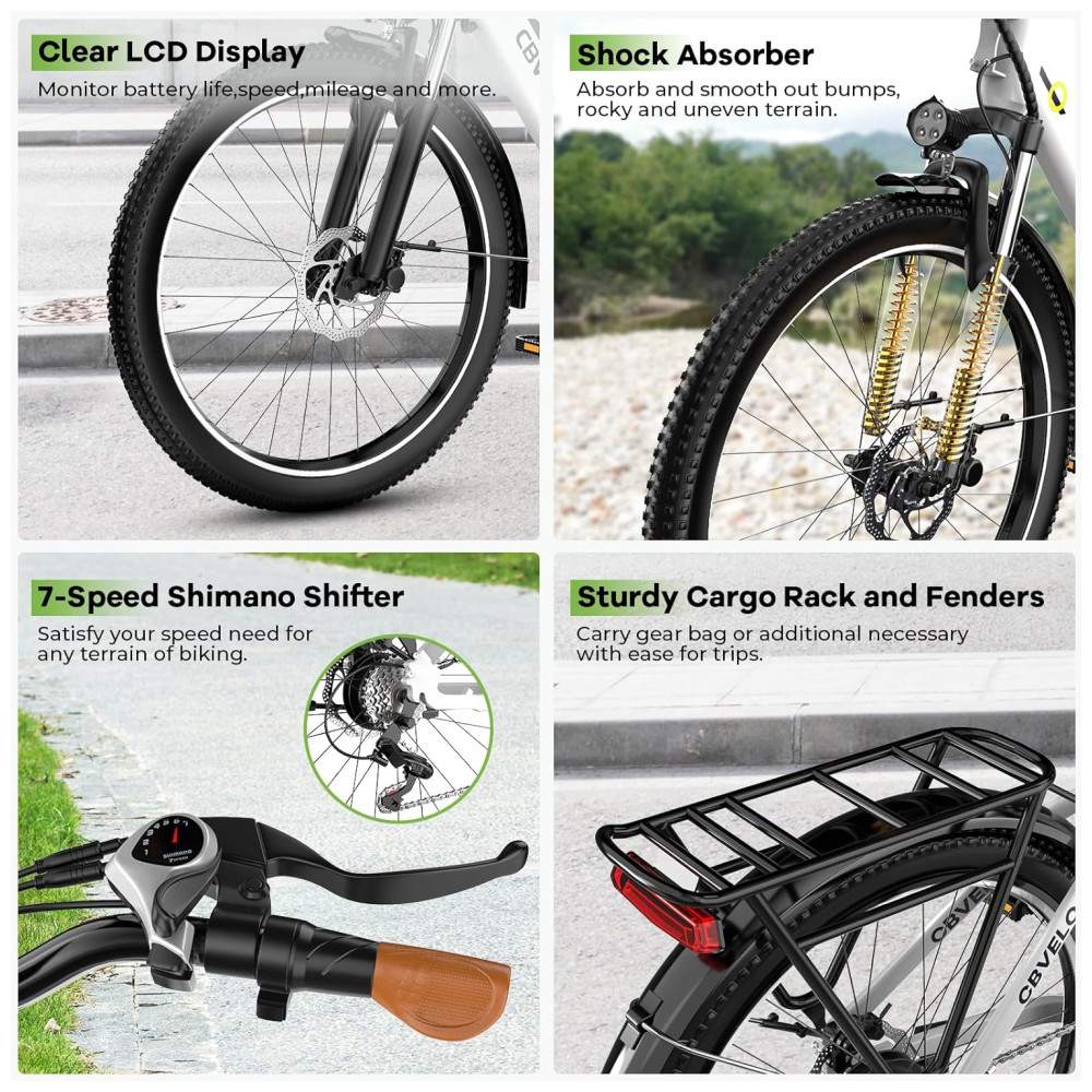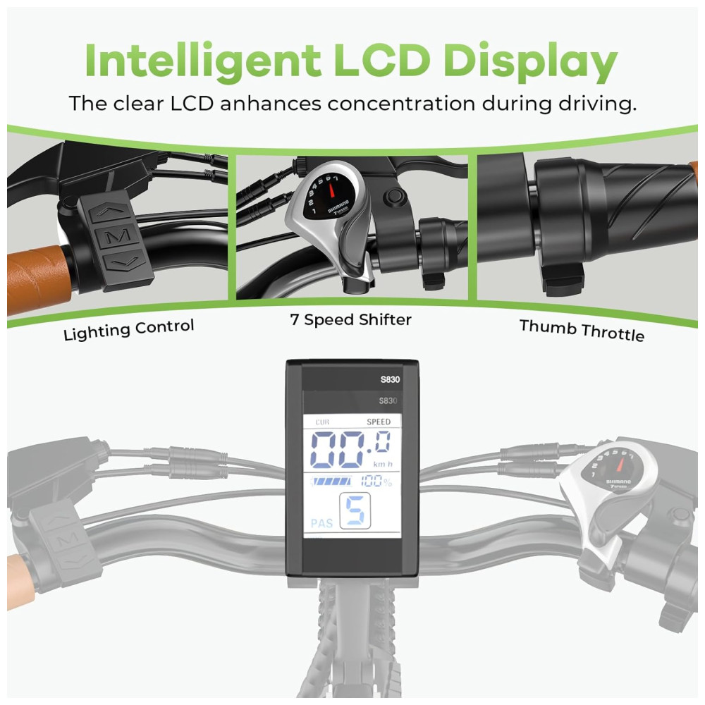 A Bicicleta Elétrica 1000 Peak para Adultos é equipada com um poderoso motor elétrico de 1000W e transmissão de 7 velocidades, tornando subidas íngremes e longos passeios uma brisa, atingindo até 25MPH e percorrendo até 80 milhas. Com uma bateria de lítio de alta capacidade de 48V 720Wh, a bicicleta oferece eficiência perfeita e equilíbrio de potência, garantindo uma pedalada agradável. Além disso, possui 5 modos de condução, tela LCD colorida, controle de cruzeiro e é montada em 90% antes do envio, proporcionando praticidade e diversão para todas as suas aventuras.