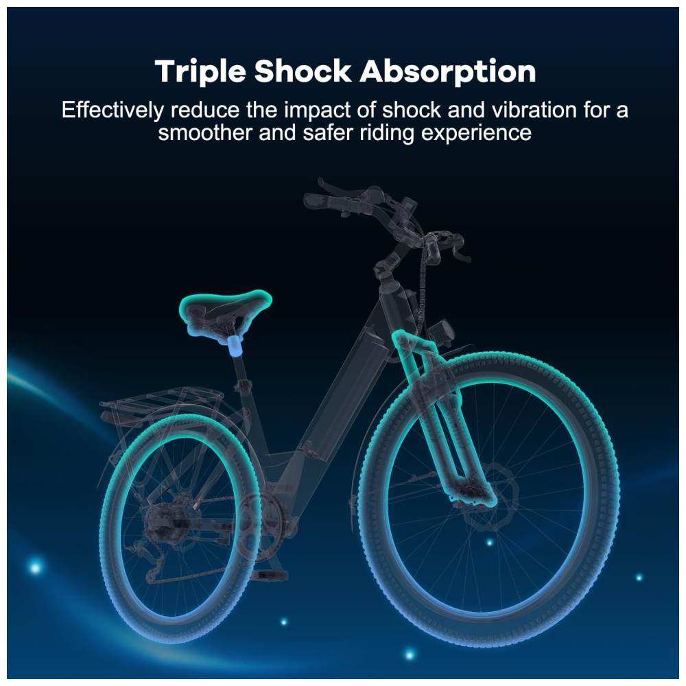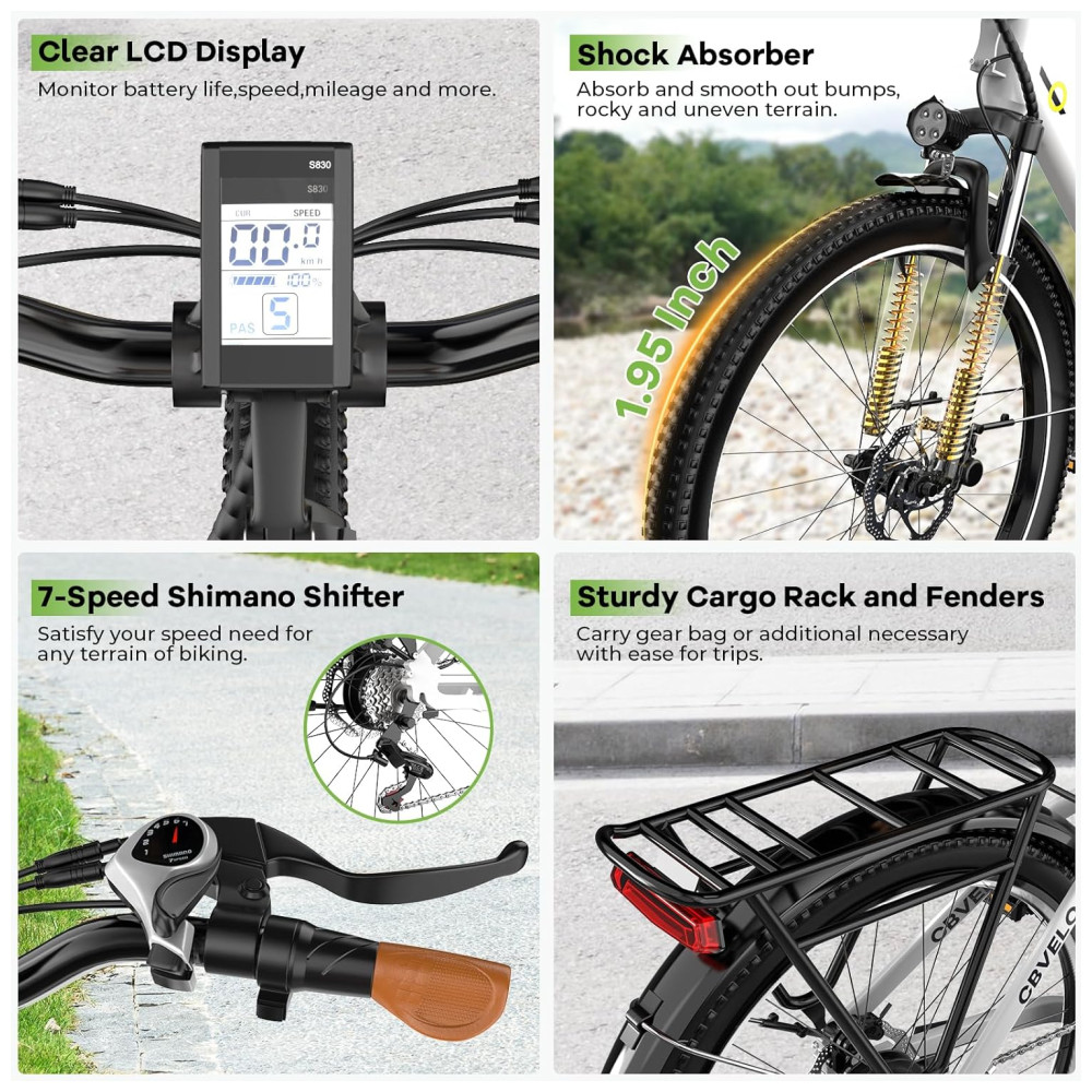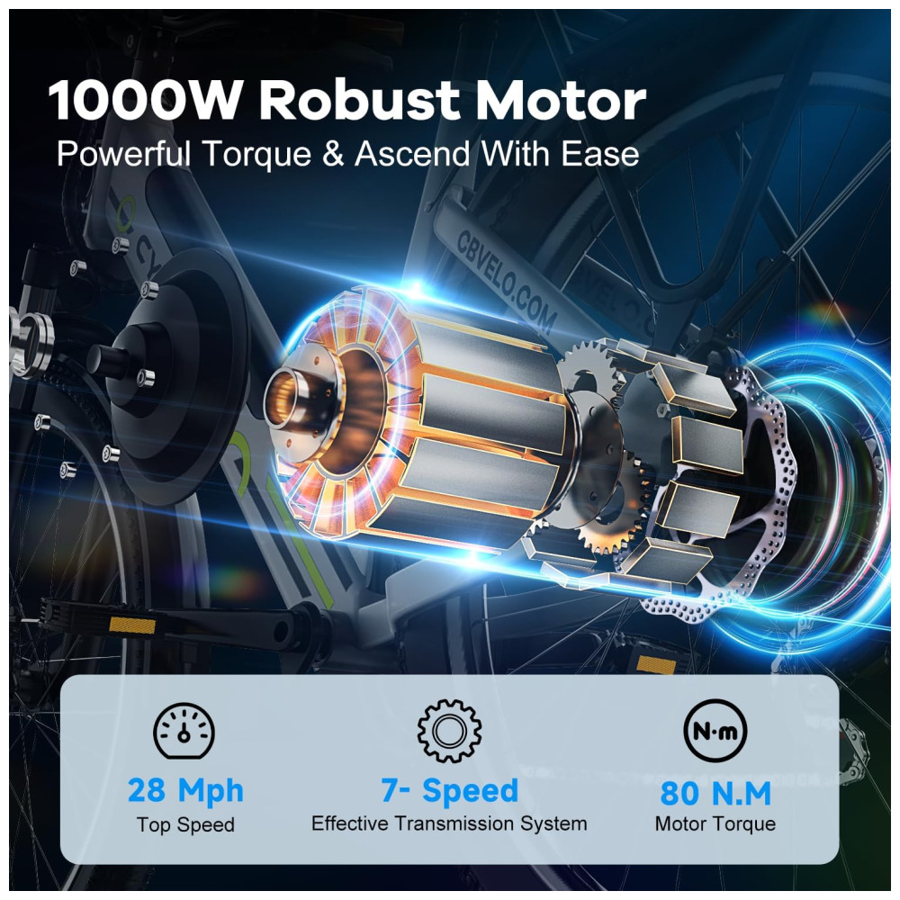 A poderosa Bicicleta Elétrica 1000W Peak possui motor de pico de 1000W e transmissão de 7 velocidades, facilitando subidas íngremes e longos passeios, atingindo até 40 km/h. Com autonomia de até 130 km, esta ebike de longo alcance oferece eficiência perfeita e equilíbrio de potência para garantir um passeio muito agradável. Com a bateria de lítio removível de alta capacidade de 48V 720Wh Ah à prova d’água, é possível percorrer até 130 km com apenas uma carga de 6 horas. Com display LCD, 5 modos de pedalada e 5 níveis de assistência, esta bicicleta elétrica pré-montada é a escolha ideal para adultos.