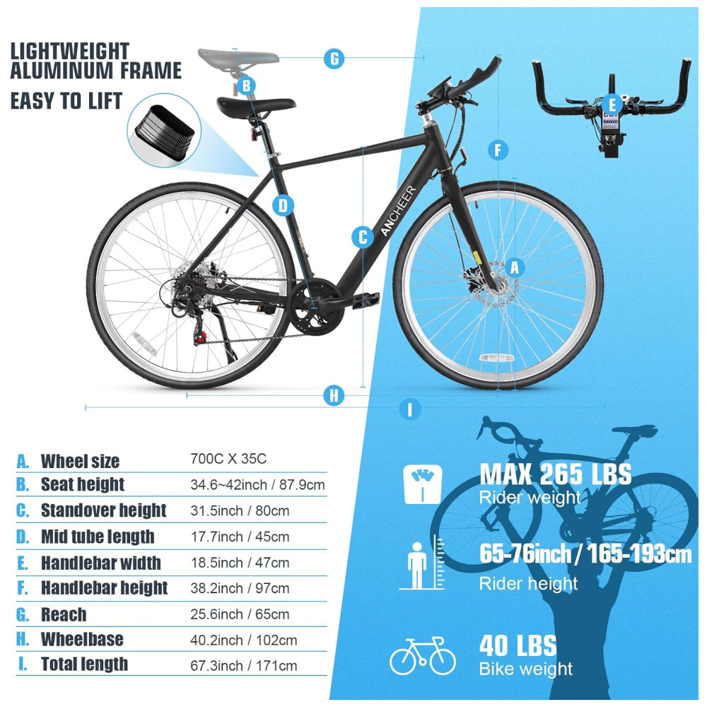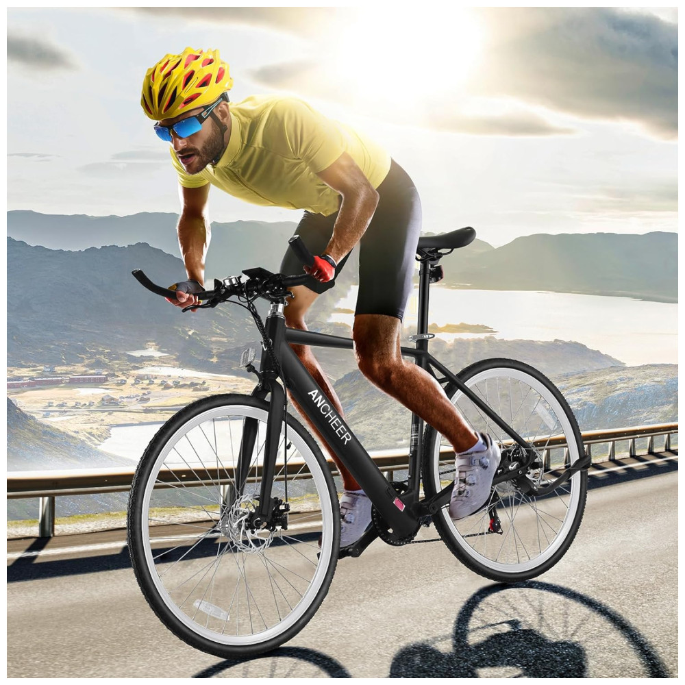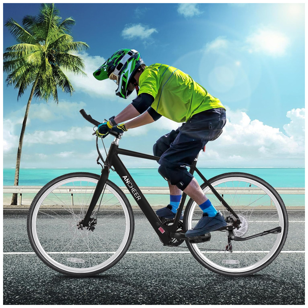 Bicicleta Elétrica ANCHEER para Adultos 20MPH Aro 700C Bicicleta Urbana com Bateria de 36V Display Digital Central Freios a Disco Duplo Biciclet