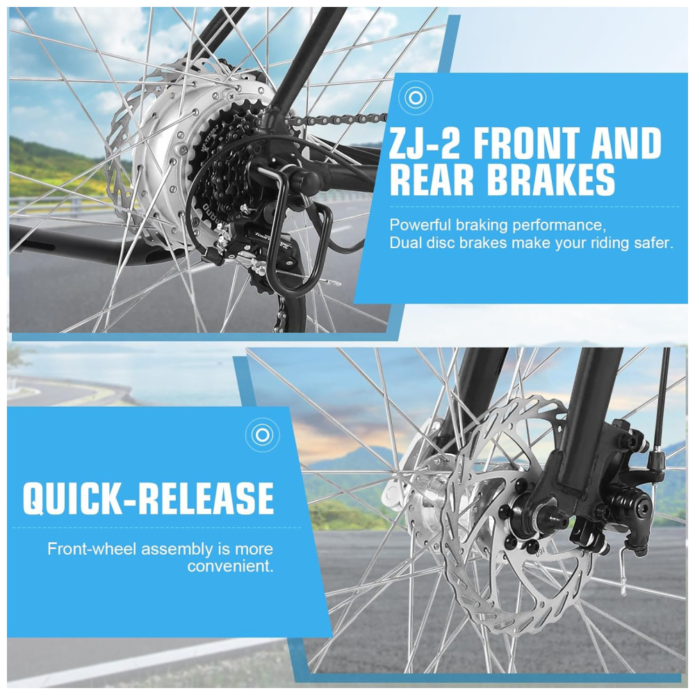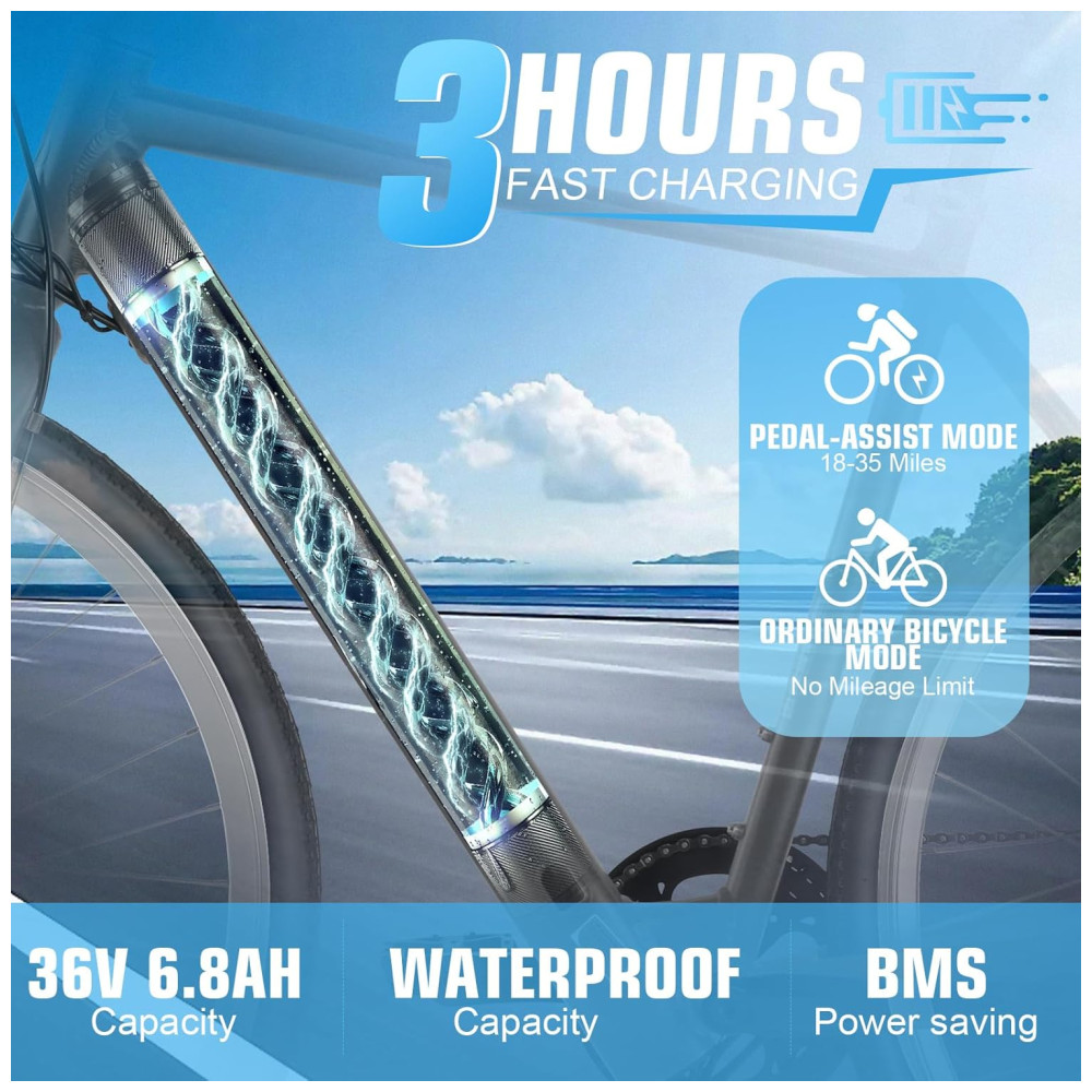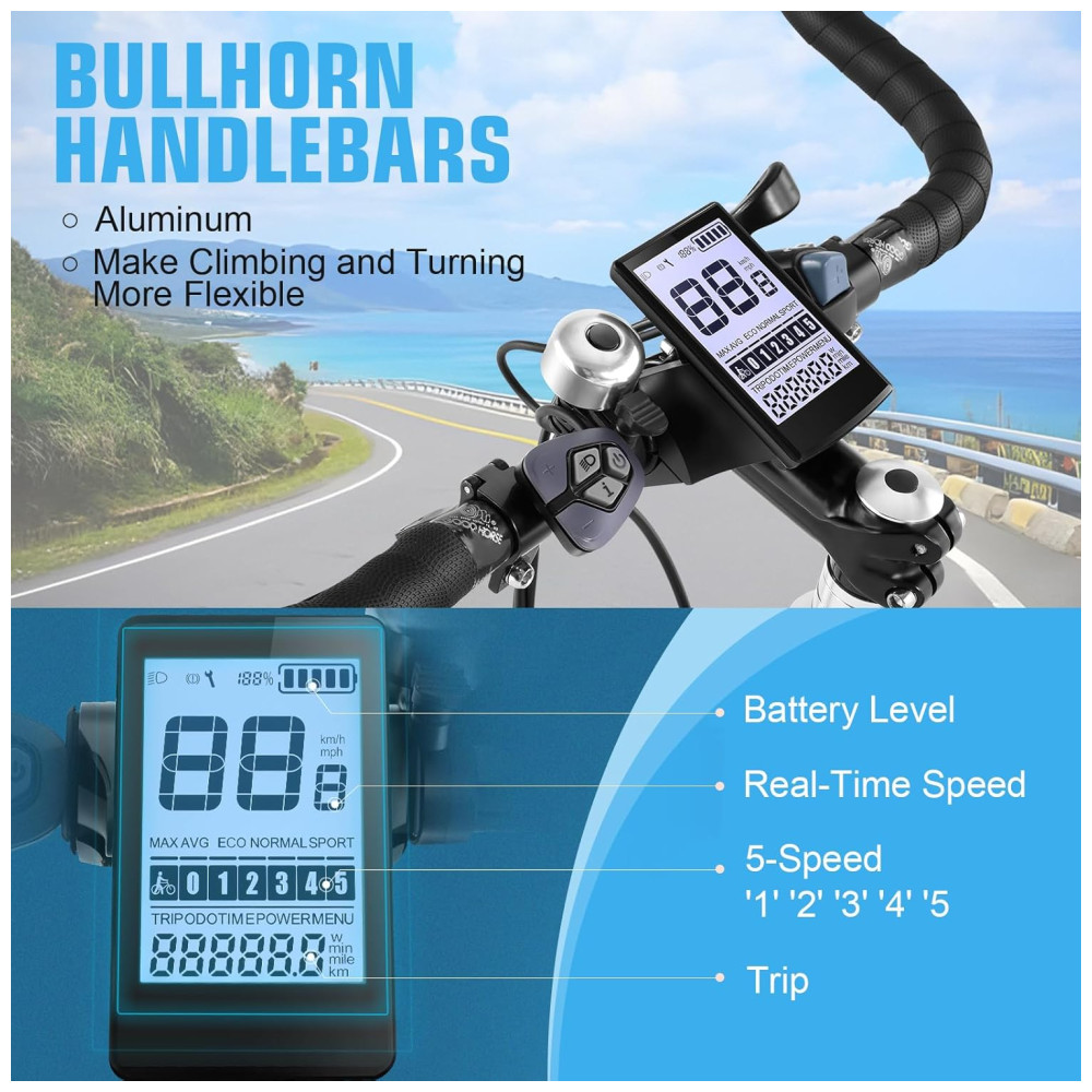 Design Elegante e Furtivo: A Bicicleta de Estrada Elétrica ANCHEER redefine as e-bikes com seu visual minimalista e clássico de bicicleta de estrada, sem bateria volumosa, apenas pura elegância e desempenho moderno. Disponível em três cores clássicas – preto, branco e laranja – você certamente chamará a atenção em cada passeio! Motor Potente e Bateria Duradoura: A bicicleta elétrica de estrada ANCHEER é equipada com uma bateria de 36V244Wh, proporcionando uma autonomia de 15 a 30 milhas por carga. Recarrega completamente em apenas 3 horas para aventuras contínuas. O motor de alta eficiência de 300W oferece uma velocidade máxima de 20MPH, proporcionando bastante potência para o seu trajeto diário. Assistência de Pedal de 5 Níveis: As e-bikes de estrada oferecem 5 níveis de assistência de pedal. Escolha entre cinco níveis de assistência para um trajeto sem suor ou um treino intenso. O quadro elegante e leve reduz o peso e aprimora a experiência de pilotagem em comparação com as e-bikes típicas, facilitando o transporte e a manobra. Display Digital Central: A bicicleta de estrada ANCHEER vem com um display LCD HD claro, mostrando velocidade, nível da bateria e modo de pilotagem em tempo real. Fornece uma interface intuitiva e fácil de ler para uma experiência de pilotagem melhor. Freios a Disco Dianteiro e Traseiro Confiáveis: As e-bikes são equipadas com freios a disco dianteiro e traseiro, oferecendo potência de frenagem responsiva e confiável, garantindo segurança e controle nas movimentadas ruas da cidade. Montagem Fácil e Serviço ao Cliente 24 Horas: 80% pré-montada, sem montagem complicada, mais rápido para desfrutar do seu passeio. Com garantia de 1 ano para o motor, bateria e carregador. Uma vez que você adquire produtos ANCHEER, oferecemos suporte técnico vitalício ou serviços de atualização. Se tiver alguma dúvida sobre a bicicleta elétrica ANCHEER, sinta-se à vontade para contatar.