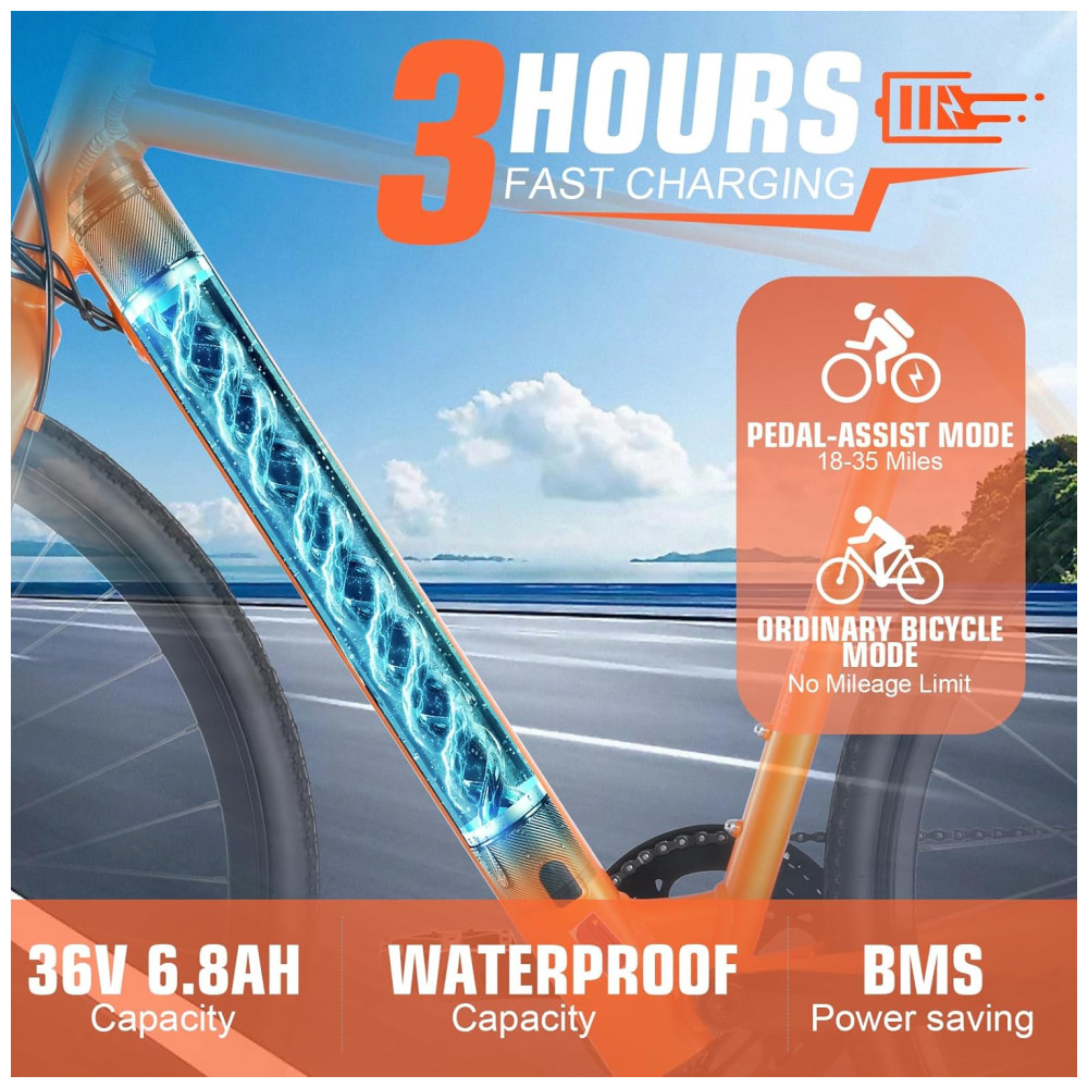 Design Elegante e Furtivo: A Bicicleta Elétrica ANCHEER redefine as e-bikes com seu visual minimalista de bicicleta de estrada clássica – sem bateria volumosa, apenas pura elegância e desempenho moderno. Disponível em três cores clássicas – preto, branco e laranja – você com certeza chamará atenção em cada passeio! Motor Potente e Bateria de Longa Duração: A bicicleta elétrica de estrada ANCHEER é equipada com uma bateria de 36V244Wh, proporcionando uma autonomia de 1530 milhas por carga. Recarrega totalmente em apenas 3 horas para aventuras ininterruptas. O motor de alta eficiência de 300W oferece uma velocidade máxima de 20MPH, fornecendo bastante potência para seu trajeto diário. Assistência de Pedal de 5 Níveis: As e-bikes de estrada oferecem 5 níveis de assistência de pedal, escolha entre eles para um trajeto sem suor ou um treino intenso. O quadro elegante e leve reduz o peso e aprimora a experiência de pedalada em comparação com as e-bikes típicas, facilitando o transporte e a manobrabilidade. Display Digital Central: A bicicleta de estrada ANCHEER vem com um display LCD HD claro, mostrando velocidade, nível de bateria e modo de pilotagem em tempo real, proporcionando uma interface intuitiva e fácil de ler para uma experiência de pilotagem melhorada. Freios a Disco Dianteiros e Traseiros Confiáveis: As e-bikes são equipadas com freios a disco dianteiros e traseiros, oferecendo uma potência de frenagem responsiva e confiável, garantindo segurança e controle nas movimentadas ruas da cidade. Montagem Fácil e Serviço ao Cliente 24 Horas: 80% pré-montada, sem montagem complicada, mais rápido para desfrutar do seu pedal. Com garantia de 1 ano para motor, bateria e carregador. Uma vez que você adquire produtos ANCHEER, fornecemos suporte técnico vitalício ou serviços de atualização. Se tiver alguma dúvida sobre a bicicleta elétrica ANCHEER, sinta-se à vontade para entrar em contato.