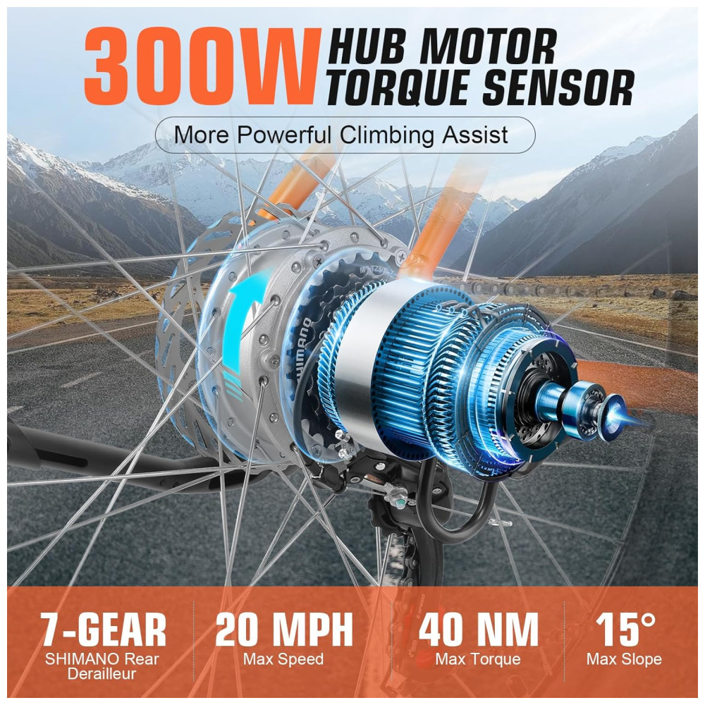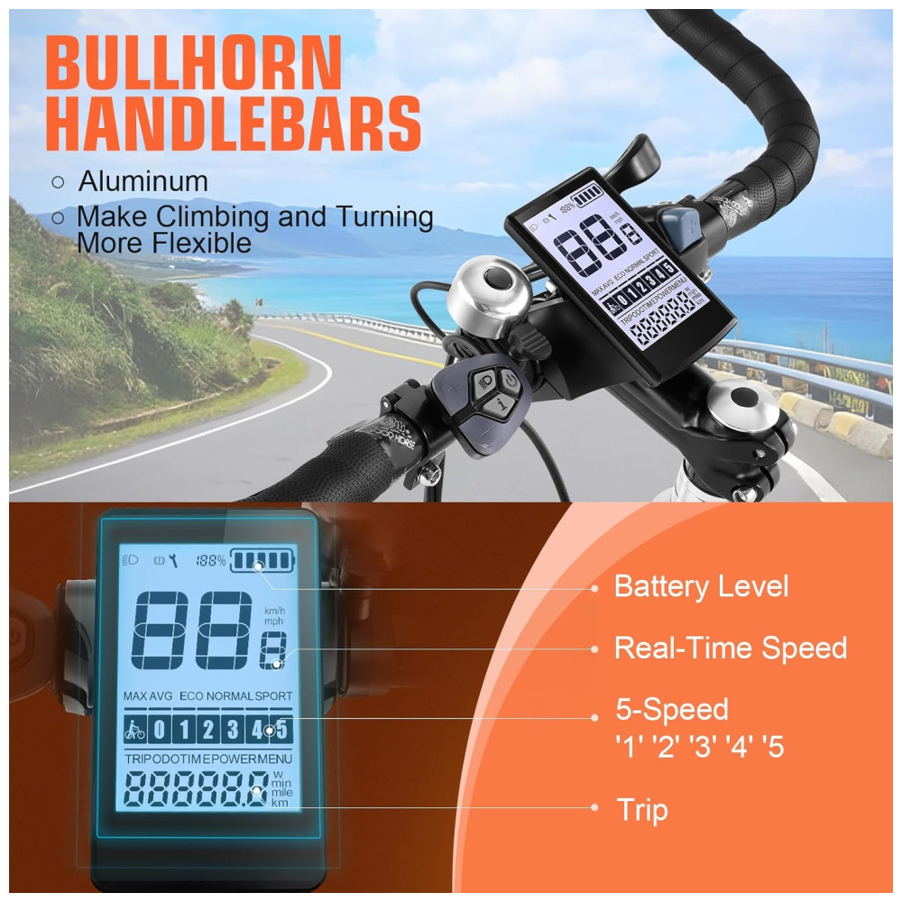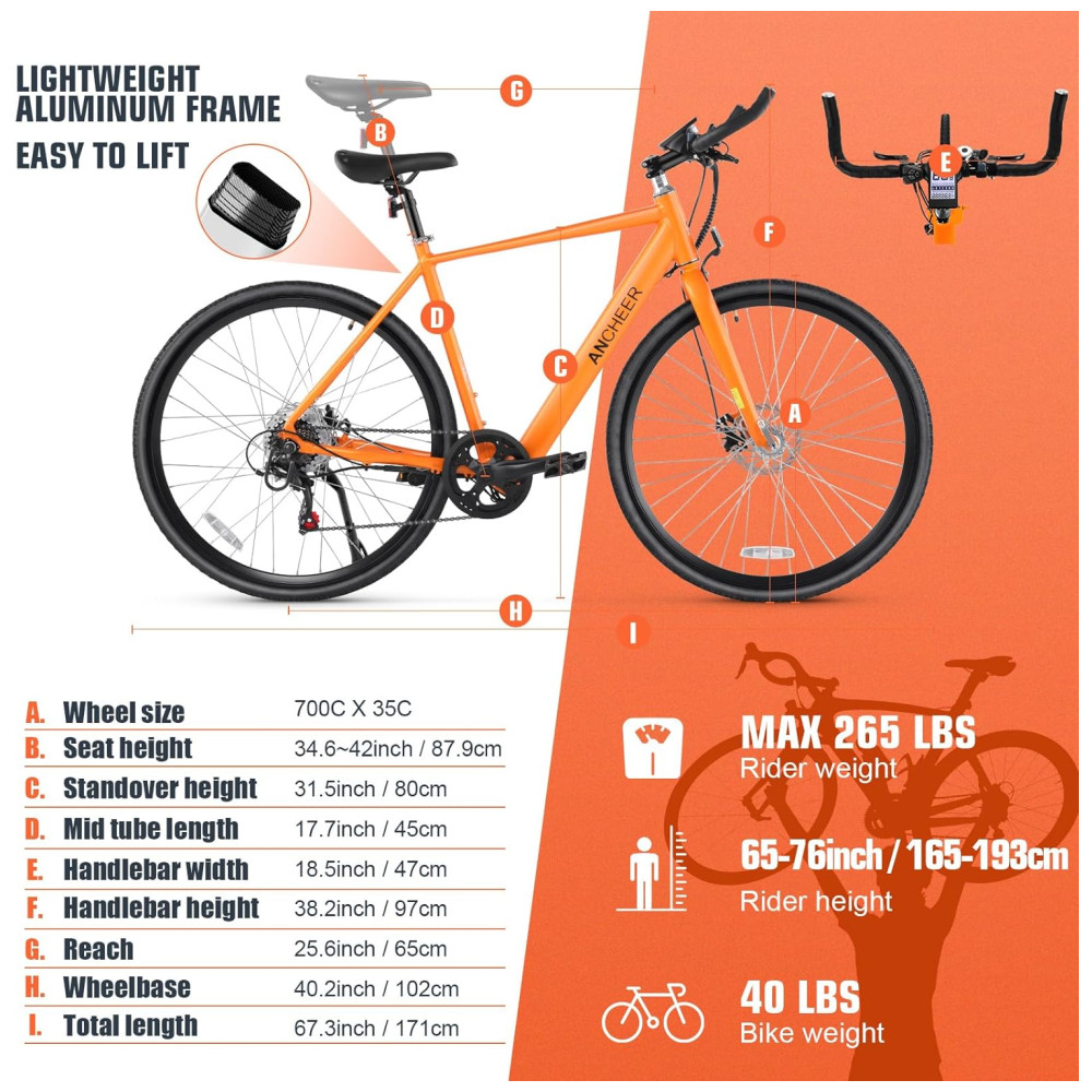 Bicicleta Elétrica ANCHEER para Adultos 20MPH Roda 700C Bicicleta de Comuter com Bateria de 36V Display Digital Central Freios de Disco Duplo Bi