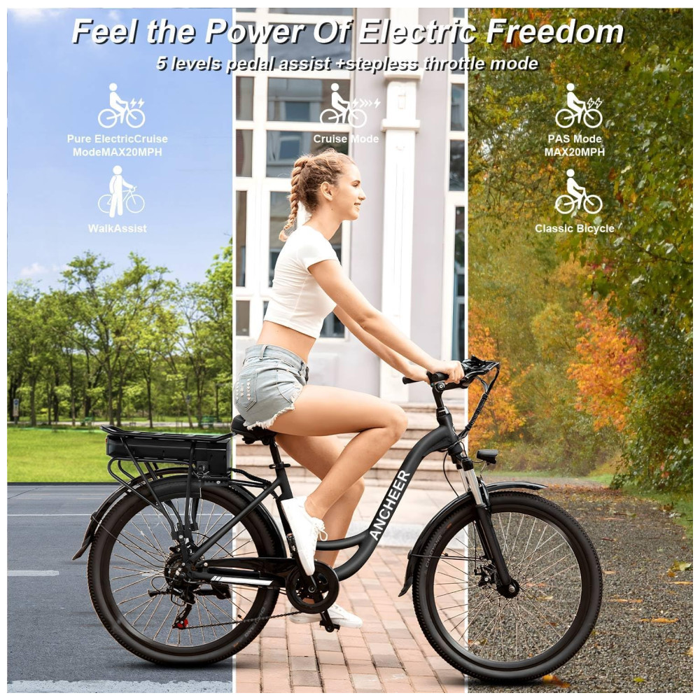 Bicicleta Elétrica ANCHEER para Adultos 48V 500Wh Autonomia de até 96 Km Bateria Removível Carregamento Rápido Aro 26″ 7 Velocidades Display Di