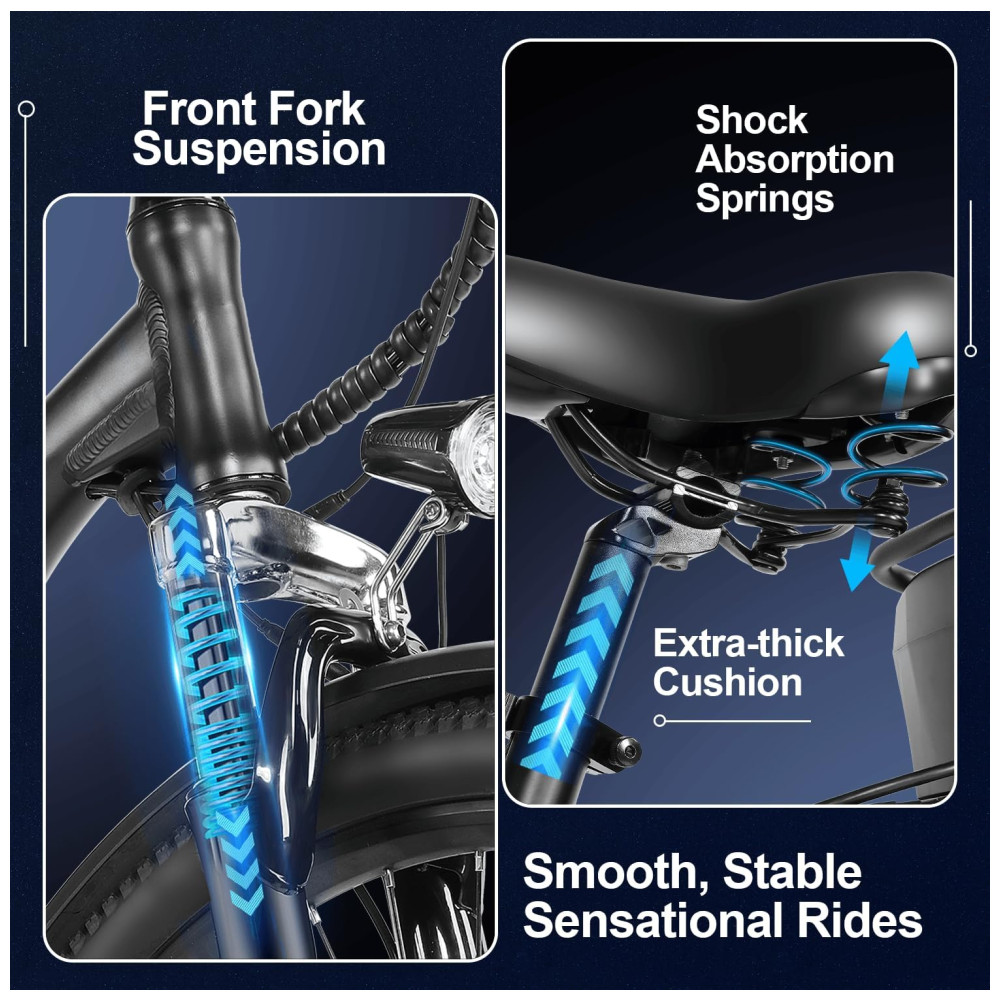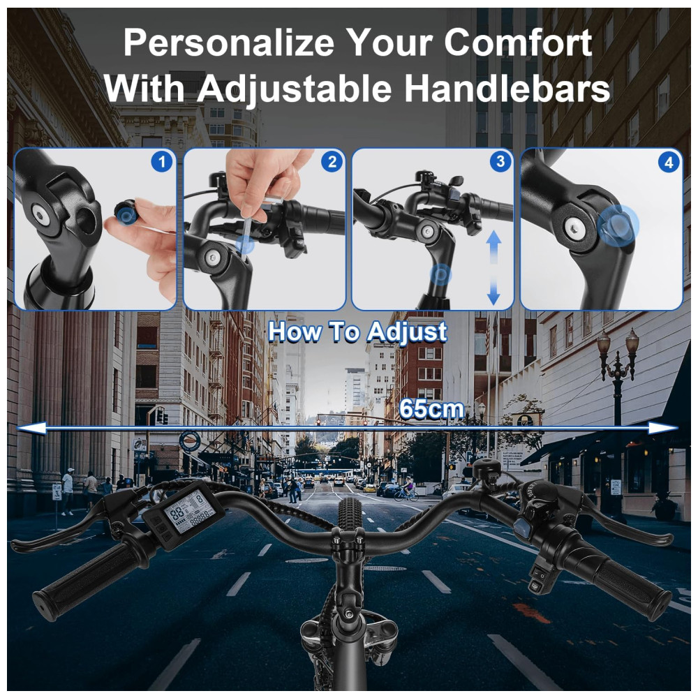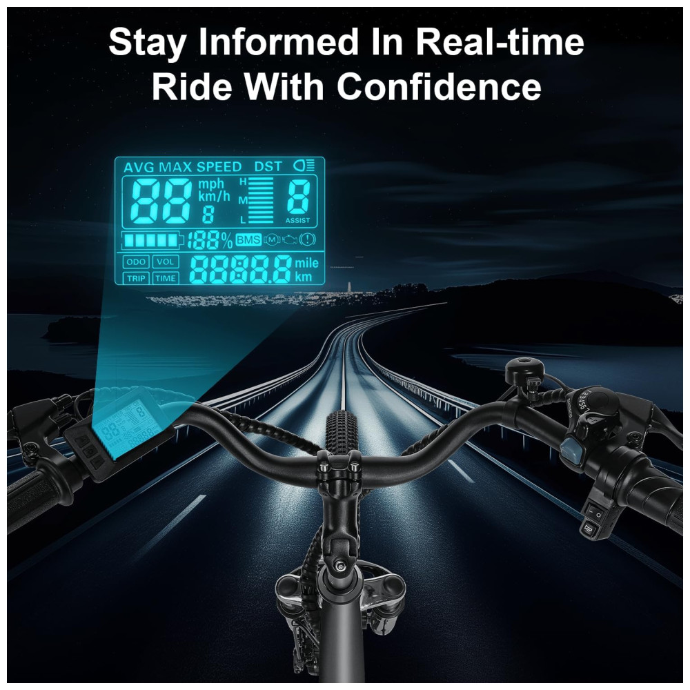 A Bicicleta Elétrica ANCHEER oferece uma autonomia impressionante de até 96 km por carga, graças à avançada bateria removível de 48V10.4Ah e carregador de 3A. Com 7 marchas versáteis, é ideal para subidas íngremes e trocas suaves. Ajuste facilmente a velocidade com 5 níveis de assistência, garantindo controle preciso e conforto. Equipada com controle de cruzeiro, display digital LCD, luz traseira e suspensão dianteira para uma pedalada segura e confortável. Leve e durável, com aro de alumínio e freios a disco dianteiros e traseiros para uma frenagem eficaz. Fácil de instalar e com suporte pós-venda confiável. Certificada UL2849.