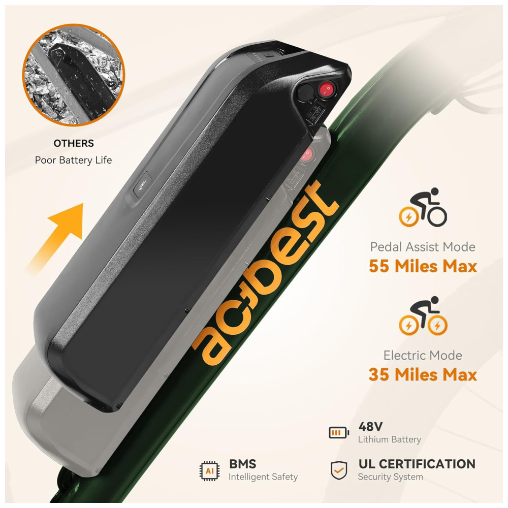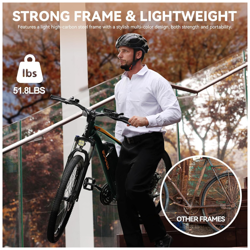 A Bicicleta Elétrica de Pico de 1000W da Actbest é a escolha ideal para um passeio longo, ecológico e de baixo consumo de carbono. Com um potente motor sem escovas de alta velocidade, atinge até 35km/h e pode percorrer até 45km no modo de aceleração e até 57km com assistência de pedal. A bateria removível de 48V é à prova d’água e à prova de choque, com fechadura antirroubo. Além disso, possui luzes de segurança, suspensão dianteira, pedal assistido de 31 estágios, pneus de 66cm, freios a disco duplo e 21 velocidades para se adaptar a diferentes terrenos. Com uma estrutura leve e resistente em aço de alto carbono, esta bicicleta elétrica da ACTBEST oferece conforto, segurança e facilidade de montagem. Aproveite a conveniência de uma bateria recarregável em casa ou no trabalho e desfrute de uma viagem suave e rápida em diversos percursos.