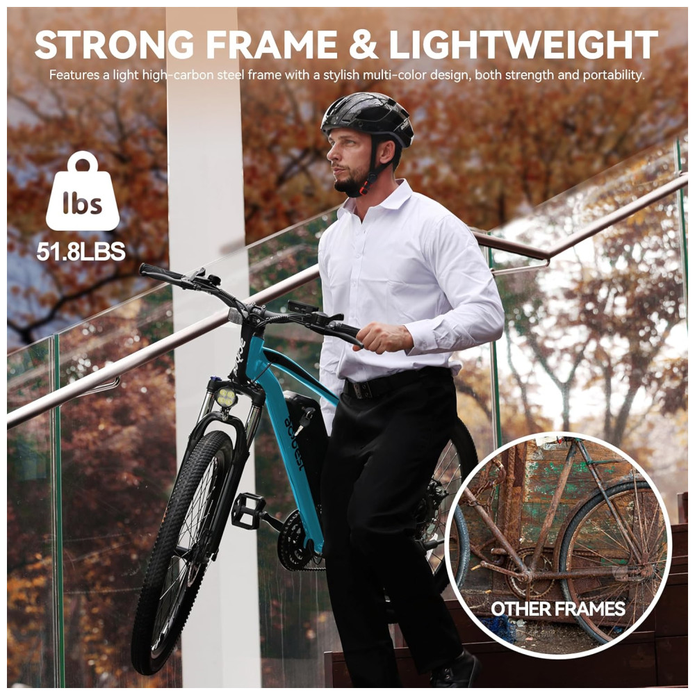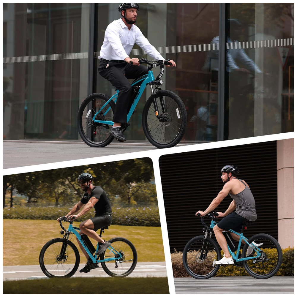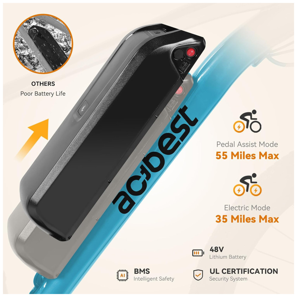 A Bicicleta Elétrica de Alta Potência Peak 1000W da ACTBEST foi projetada para adultos em busca de longos passeios ecológicos e de baixo carbono. Equipada com motor sem escovas Peak1000W de alta velocidade, atinge até 22MPH, com alcance de até 55 milhas no modo acelerador e de 35-55 milhas no modo pedal assistido. Com bateria externa de 48V removível, à prova d’água e à prova de choque, é acompanhada por carregador de 42V 2A com trava antifurto. Possui luzes de segurança, assento ajustável de 53″ a 63″, suportando até 350lbs, e função de assistência de pedal em 3 estágios. Com a Bicicleta Elétrica ACTBEST, equipada com motor Peak 1000W, você terá viagens rápidas e agradáveis, perfeitas para deslocamentos diários, viagens e escaladas. A bateria removível de 48V, certificada pela UL2849, proporciona até 55 milhas por carga no modo PAS, permitindo longas distâncias. Com 21 marchas e três modos de pilotagem – elétrico puro, assistência ao pedal e manual – oferece uma experiência adaptável e suave para suas necessidades de pilotagem. Os pneus de 26″, suspensão dianteira, freios a disco duplo, refletores traseiros e luzes LED garantem uma viagem segura, confortável e prazerosa. Fácil de montar, com quadro leve de aço de alta qualidade e design elegante multicolorido, a ACTBEST é a solução de transporte confiável e leve que você procura.