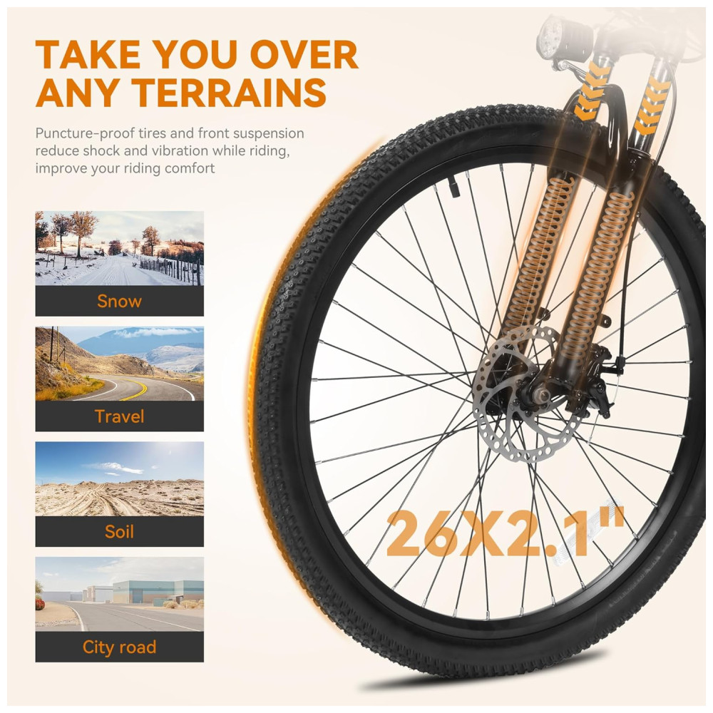 Bicicleta Elétrica Apex para Adultos Mountain Bike Elétrica de 26″ 1000W Velocidade Máxima de 22MPH Autonomia de até 55 Milhas Bateria Removível d