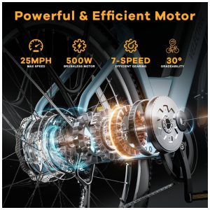 Motor de alta velocidade de 500 W, sem escovas, pico de 1000 W e transmissão de 7 velocidades, tornando colinas íngremes e longos passeios uma brisa, até 25+ MPH, até 70+ milhas, a e-bike de longo alcance oferece eficiência perfeita e equilíbrio de potência para garantir que seu passeio seja agradável. Mais potente, mais divertido, sem medo de subir, motores sem escovas de alta eficiência, estáveis, menos ruído, baixa manutenção do que uma bicicleta elétrica de 350 W. A e-bike cityrang 2.0 é perfeita para adultos.