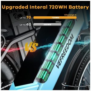 A bicicleta elétrica vem com uma potente bateria de íons de lítio de 48 V 720 WH Ah, à prova d’água, oculta, removível e com células ocultas, que cobre uma autonomia de até 70 milhas por carga durante 5 a 6 horas, até mais de 25 MPH, para que a bicicleta elétrica possa atender às necessidades diárias de deslocamento ou viagens. Esta bicicleta elétrica para adultos possui dois métodos de carregamento: remover a bateria para carregar ou carregar diretamente na bicicleta. Bicicletas elétricas para adultos são a sua melhor escolha.