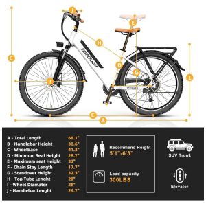 Bicicletas elétricas de alta performance e ciclismo: Com 5 modos de pilotagem (modo elétrico puro, modo de assistência ao pedal, modo de bicicleta clássica) e 5 níveis de assistência ao pedal (PAS) para sua escolha. O visor LCD colorido mostra a velocidade em tempo real, a carga da bateria, os níveis de assistência ao pedal, a quilometragem e muito mais, é fácil para você monitorar seus passeios de dia e de noite. A função de controle de cruzeiro pode ser ligada e desligada facilmente com o toque de um botão.