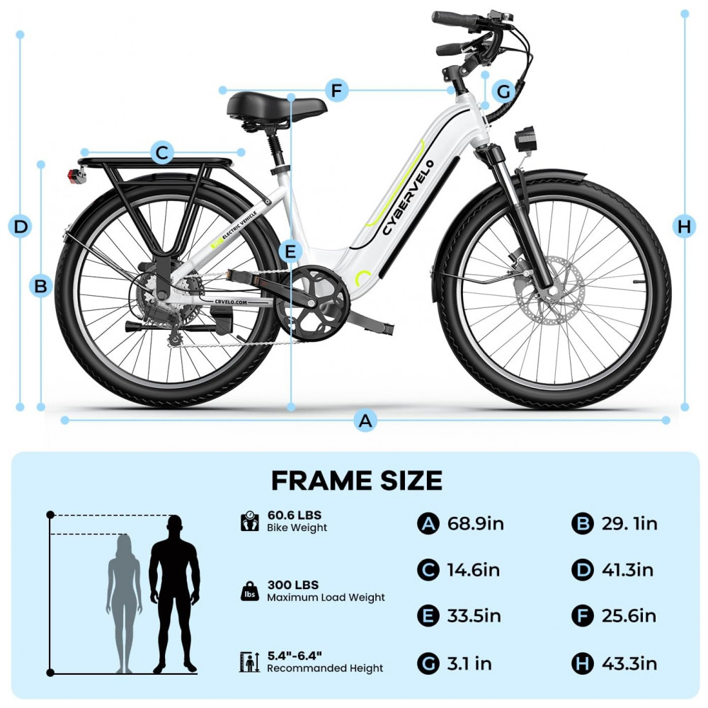 A potente Bicicleta Elétrica Cybervelo 1000 Peak oferece um motor sem escova de alta velocidade de pico de 1000W e transmissão de 7 velocidades, tornando subidas íngremes e longos passeios uma brisa, atingindo até 25MPH e cobrindo até 80 milhas. Com eficiência e equilíbrio perfeitos de energia, garantindo uma experiência de pedalada mais prazerosa. Mais potência, mais diversão, sem medo nas subidas; estável, menos ruído e baixa manutenção em comparação com bicicletas elétricas de 350W. Ideal para adultos, com uma bateria duradoura de até 80 milhas, motor sem escova de pico de 1000W/1500W e transmissão de 7 velocidades, permitindo subidas íngremes e longas distâncias, até 25MPH e 85 milhas de autonomia. Oferece maior força, arranques mais rápidos e melhor capacidade de escalada, ideal não só para deslocamentos diários, mas também para idas à praia, trilhas e viagens com amigos. Equipada com suspensão dianteira ajustável, absorção de impactos no selim, freios a disco duplos, e pneus resistentes a furos, garantindo segurança e conforto excepcional, com desempenho de absorção de impactos excepcional. Melhor bicicleta elétrica para adultos abaixo de 700, combinada com freios a disco mecânicos dianteiros e traseiros e sistema EABS, desfrute de uma experiência de pedalada confortável e frenagem potente, mesmo em terrenos acidentados. Display LCD resistente à água com 5 modos de pilotagem: modo totalmente elétrico, modo de assistência de pedal, modo de bicicleta clássica e 5 níveis de assistência de pedal (PAS) para escolher. O display colorido mostra velocidade em tempo real, nível de bateria, níveis de assistência de pedal, quilometragem e muito mais, facilitando o acompanhamento dos seus passeios de dia e de noite. A função de controle de cruzeiro pode ser facilmente ativada e desativada com o toque de um botão. A Bicicleta Elétrica Cybervelo é entregue 90% montada e inclui dois pedais e um selim. Nossa equipe de suporte ao cliente está disponível 24/7 para ajudá-lo com quaisquer dúvidas ou preocupações.