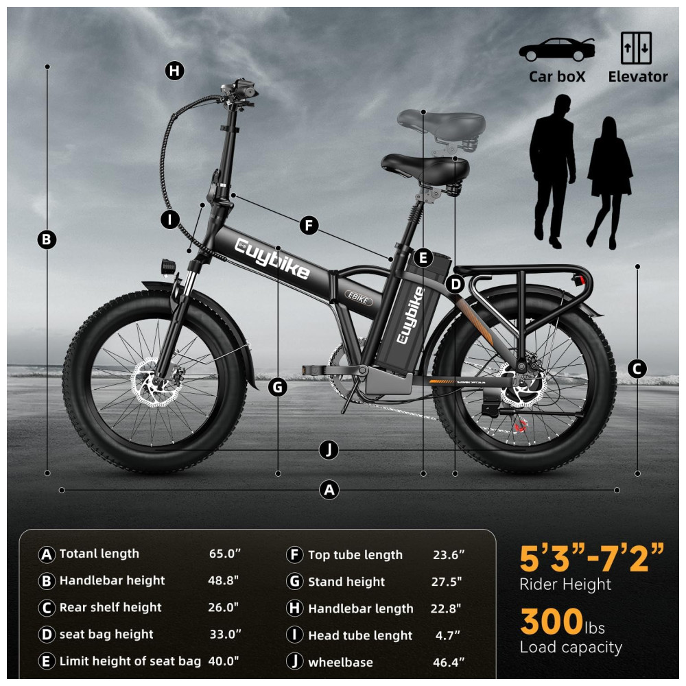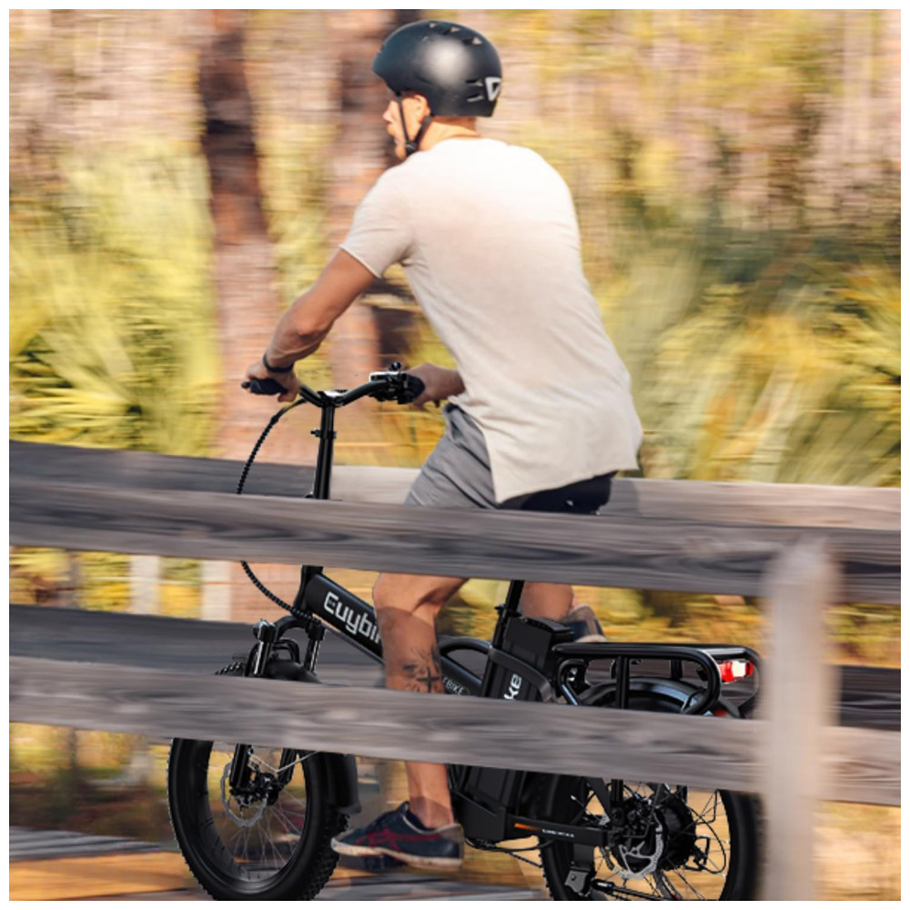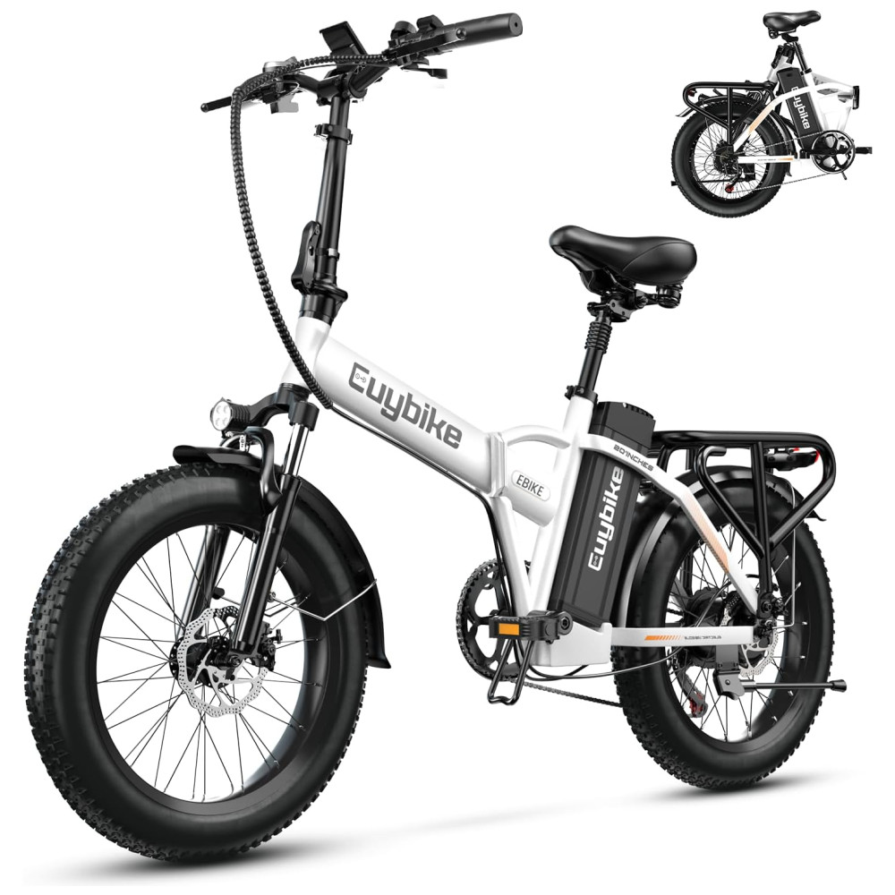 Condução segura e confortável: A bicicleta elétrica adota freio de desligamento automático EABS + freios a disco duplos dianteiros e traseiros para frenagem sensível. Ela foi projetada com forte desempenho off-road, força de frenagem confiável e alto fator de segurança. O garfo dianteiro e o canote de selim de alta resistência absorvem os solavancos de estradas longas e irregulares. Os pneus largos de 20″ são antiderrapantes e à prova de furos, garantindo que você possa pedalar em estradas, neve, praias e estradas montanhosas acidentadas.