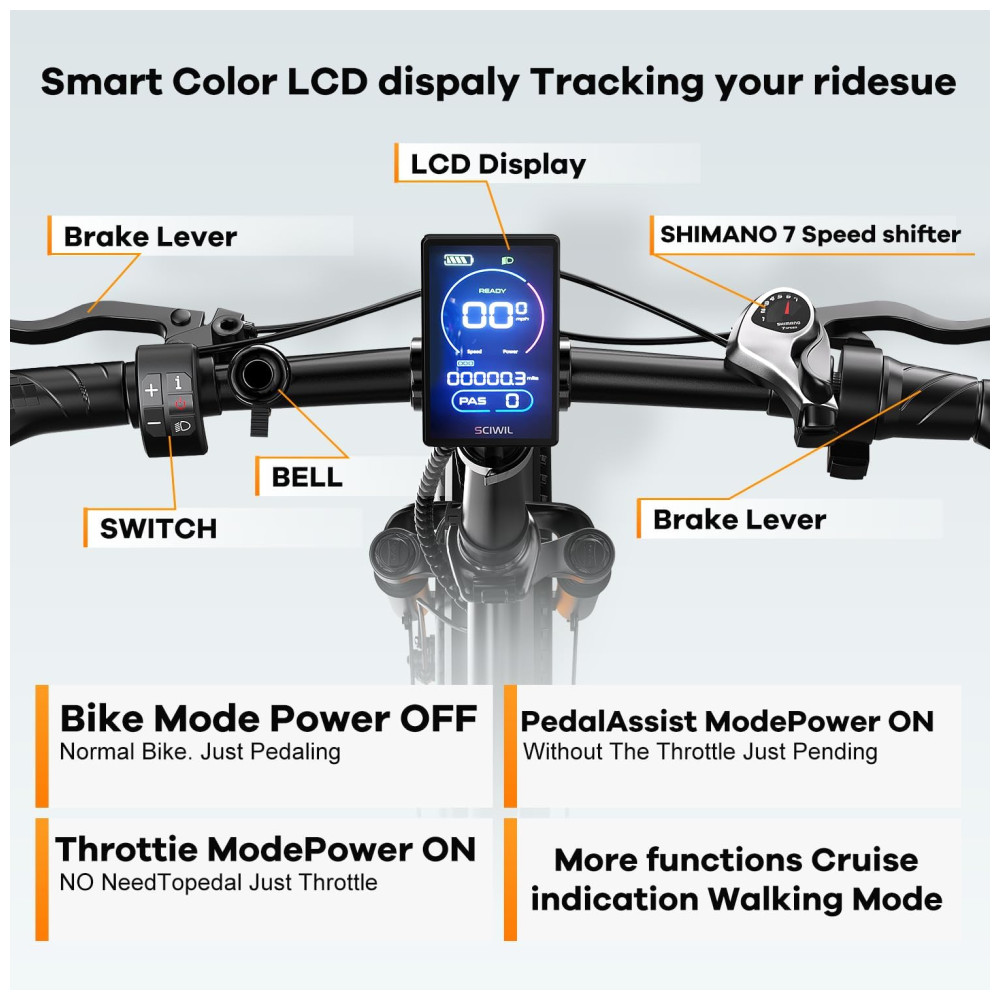 Display de LCD avançado e 3 modos de pilotagem: As bicicletas elétricas KEBIKO vêm com uma porta de carregamento USB para carregar o telefone celular. Com 3 modos de pilotagem (modo elétrico puro, modo de assistência ao pedal, modo de bicicleta clássica) e 5 níveis de assistência ao pedal (PAS) para sua escolha, alterne sem esforço entre o acelerador e a assistência do pedal para combinar com seus diversos estados de espírito ao pedalar. O visor LCD mostra a velocidade em tempo real, a energia da bateria, os níveis de assistência do pedal, a quilometragem e muito mais, fácil para você rastrear seus passeios durante o dia e Noite