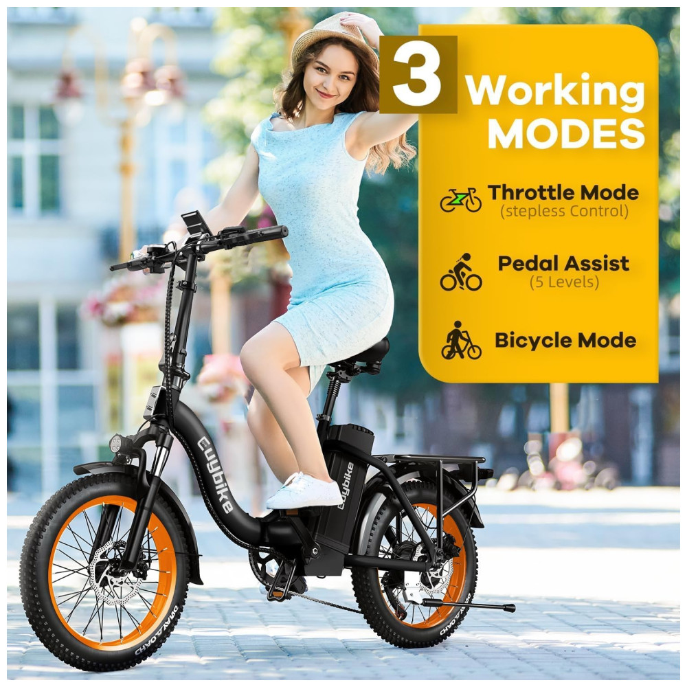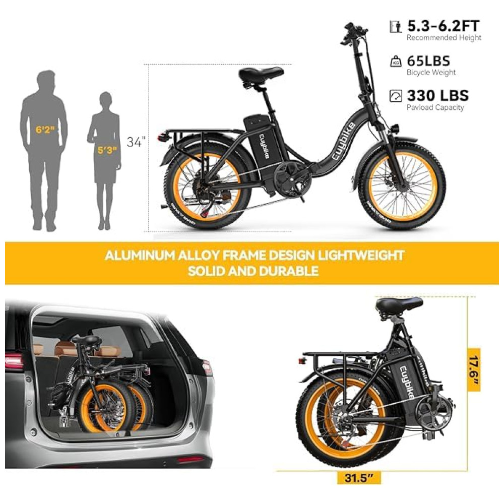 Modelo dobrável: A bicicleta elétrica KEBIKO foi projetada para ser dobrável. Com dimensões de 102 x 45 x 80 cm (40,2 x 17,7 x 31,5 polegadas) e peso de apenas 29 kg, a bicicleta elétrica pode ser facilmente dobrada e guardada no porta-malas do carro ou transportada no metrô, economizando espaço e sendo portátil.