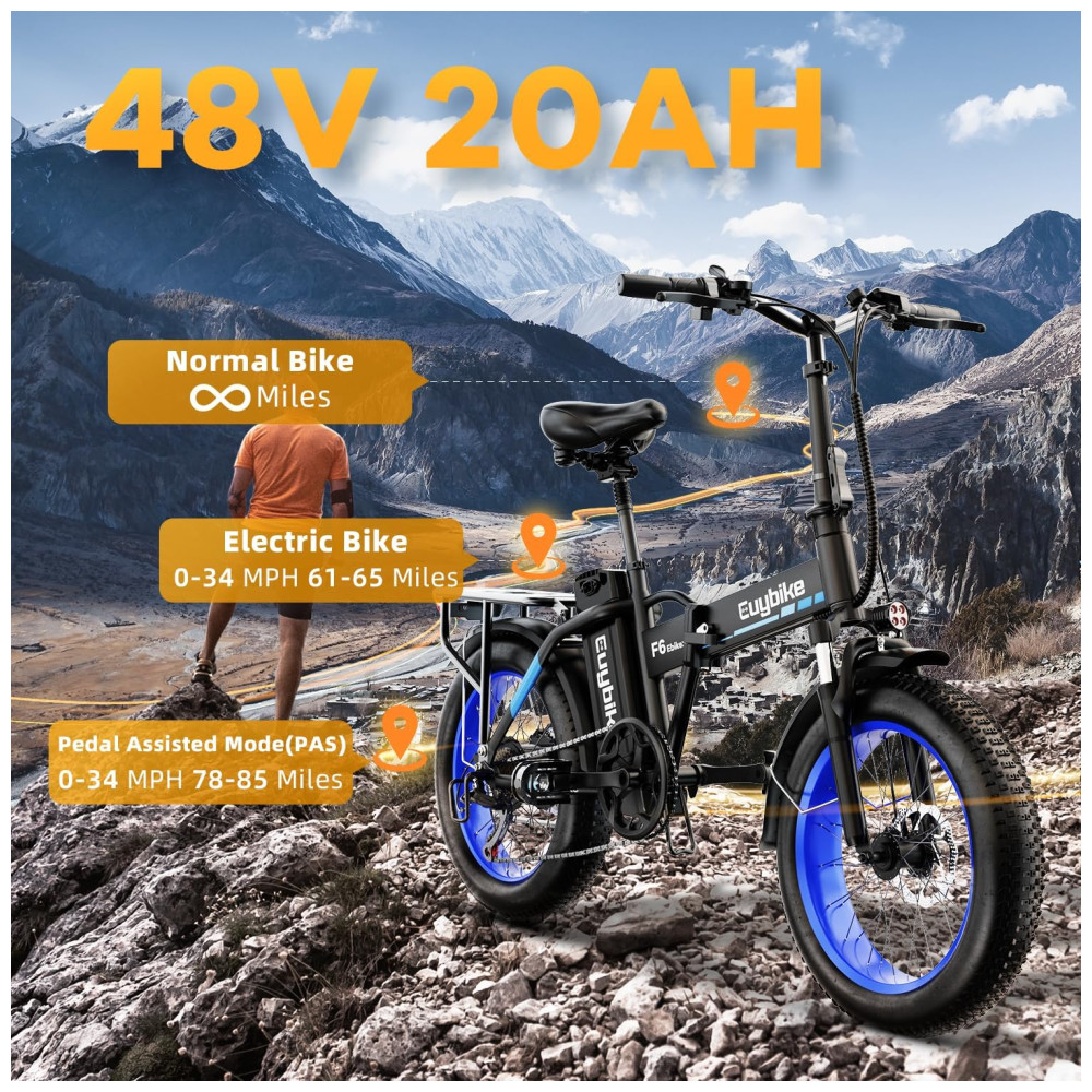 Os pneus largos de 20″ são antiderrapantes e à prova de furos, garantindo que você possa pedalar em estradas, neve, praias e trilhas de montanha acidentadas.