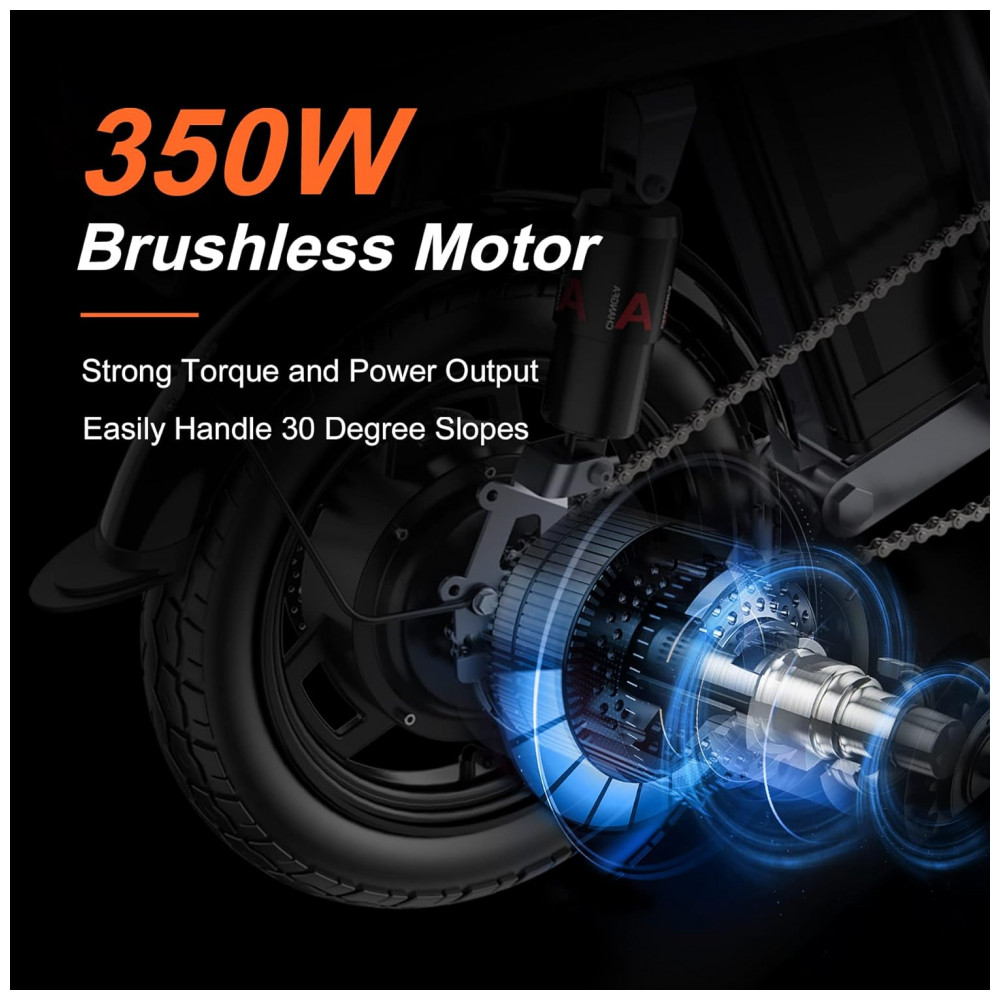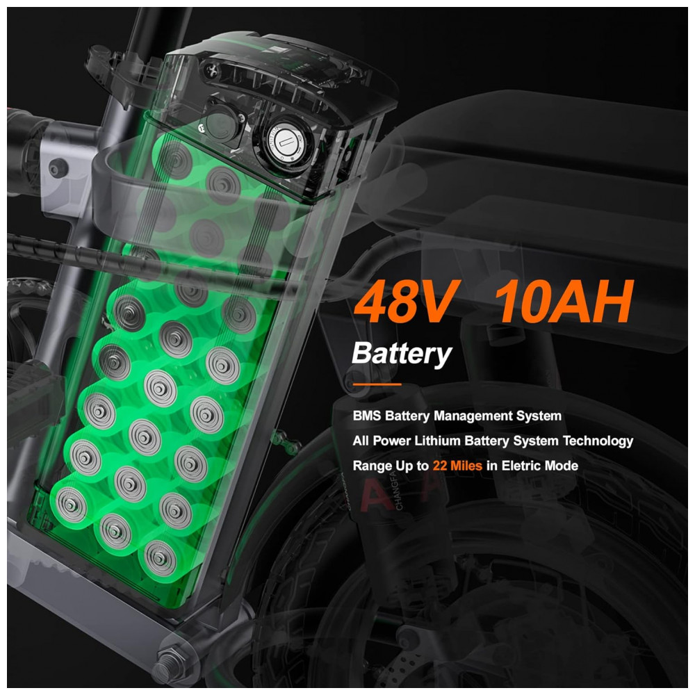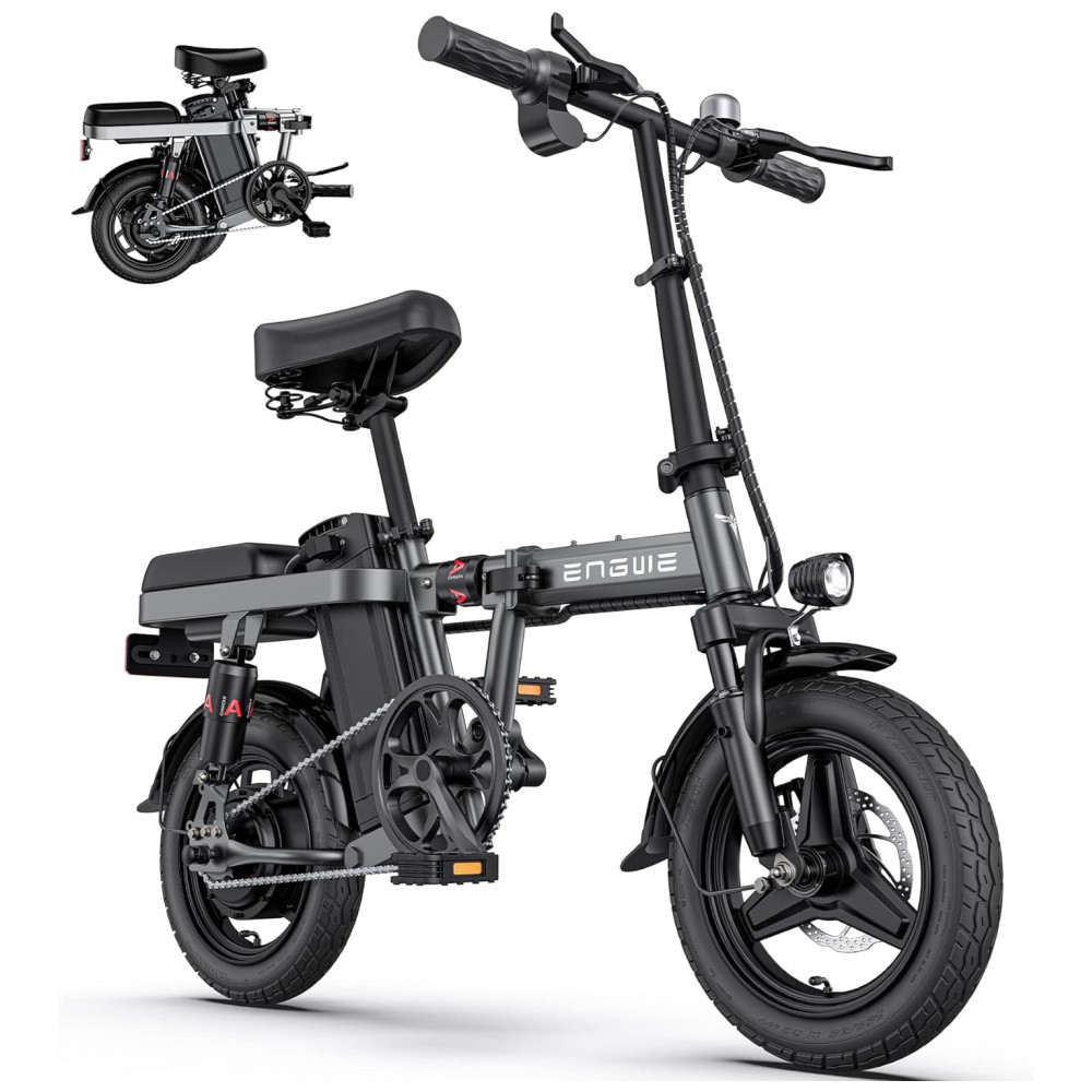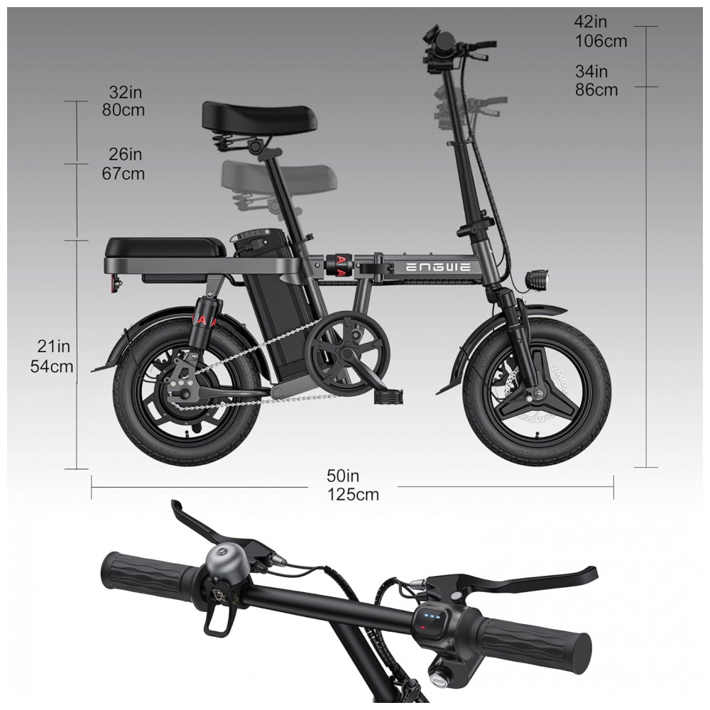 Pequeno, mas poderoso Com uma bateria de lítio removível de 48V 10Ah, um motor de 350W pico de 600W e pneus run flat a vácuo de 35 centimetros. A bicicleta elétrica ENGWE T14 pode atingir uma velocidade máxima de 32 km e tem um alcance de 35 km no modo elétrico, 59 km no modo assistido. Esta bicicleta elétrica é perfeitamente adequada para deslocamentos urbanos ou passeios descontraídos.