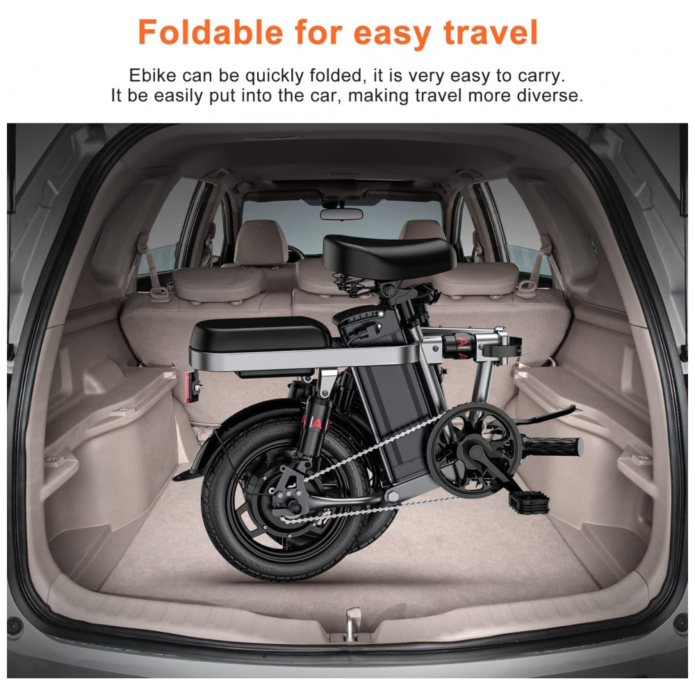 Dobrável e conveniente Esta pequena ebike pode ser dobrada sem esforço para zenamento e transporte compactos, tornando a o meio de transporte ideal para escola e trabalho, passeios comunitários, compras de super, visitas regulares a amigos e familiares e se destaca como o compacto dobrável bicicletas elétricas.