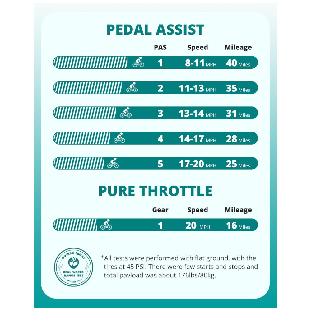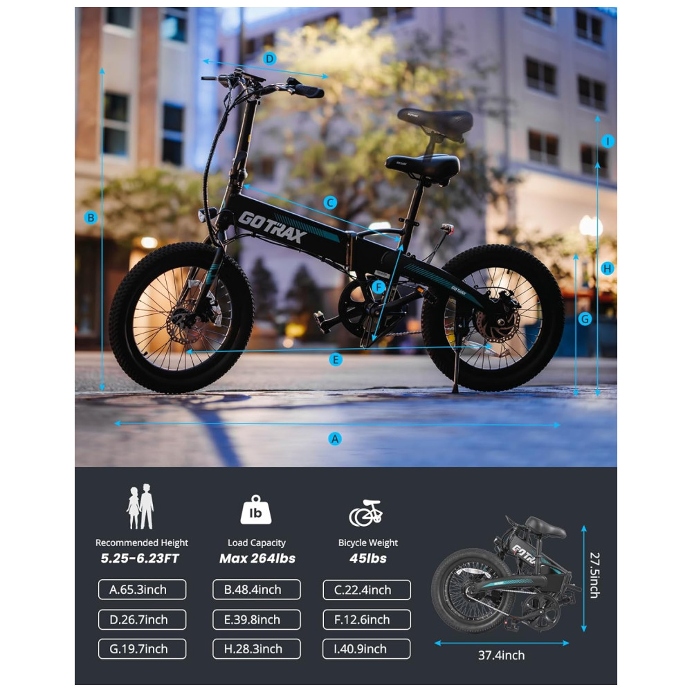 Desempenho de Pilotagem Poderoso: Liberte o aventureiro interior com a bicicleta elétrica Gotrax R1! Seus pneus resistentes de 20″x2.6″ e a potente bateria de 48V a tornam adequada para todos os terrenos, perfeita para seu deslocamento diário, campus ou passeios no parque e outras aventuras. Com uma potência máxima de 500W, o motor poderoso permite atingir uma velocidade máxima de 20mph com facilidade. De deslocamentos para o trabalho ou escola a explorar a natureza, a bicicleta elétrica R1 é perfeita para suas necessidades. Controle na Ponta dos Dedos: Tenha a experiência definitiva de eficiência e conveniência com nossa ebike que vem com um grande display inteligente, fornecendo fácil acesso a métricas importantes de passeio. Com duas opções de carregamento disponíveis, você pode carregar completamente a bateria de 48V7.8Ah em apenas 5,5 horas, proporcionando uma autonomia máxima de 15,5 milhas no modo elétrico puro ou 40 milhas com auxílio ao pedalar. Seja para deslocamentos para o trabalho ou desfrutar de um passeio relaxante, esta ebike oferece versatilidade e desempenho incomparáveis. Design Dobrável e Portátil: A seleção de bicicletas elétricas dobráveis da Gotrax torna fácil aproveitar o ar livre, sendo compacta o suficiente para fácil transporte. Você pode facilmente colocá-la no porta-malas do carro ou levá-la no metrô para tornar seu deslocamento suave sem engarrafamentos. E quando estiver pronto para algumas aventuras ao ar livre, basta desdobrar a bicicleta e você estará pronto para sair. Tamanho dobrado: 95x45x70 cm. Confiança com Componentes de Qualidade: Nosso sistema de transmissão personalizado é construído para suportar terrenos de praia e montanha, garantindo máxima confiabilidade e durabilidade. Os freios a disco duplo oferecem uma potência de frenagem poderosa para maior segurança e uma experiência de pilotagem confortável. O sino, farol LED e refletor traseiro aumentam a visibilidade, tornando a pilotagem noturna tão segura e segura quanto a diurna. Com os recursos de segurança de nossas bicicletas, você pode pedalar com confiança, independentemente do horário do dia ou condições da estrada. 3 Modos de Pilotagem: Oferecemos uma garantia de peça de 365 dias e serviço ao cliente 24 horas. Experimente uma pilotagem versátil com nossos 3 modos de bicicleta elétrica! A Gotrax R1 é certificada pela UL2849 e colocamos sua segurança em primeiro lugar.