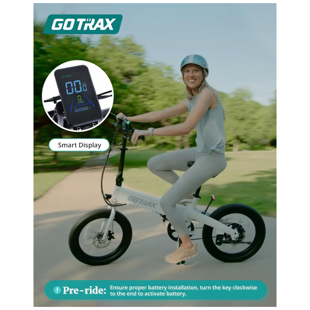 Bicicleta Elétrica Dobrável Gotrax R1 Branca 20″ | Motor 500W Bateria 48V 78Ah 3 Modos de Condução Freios a Disco