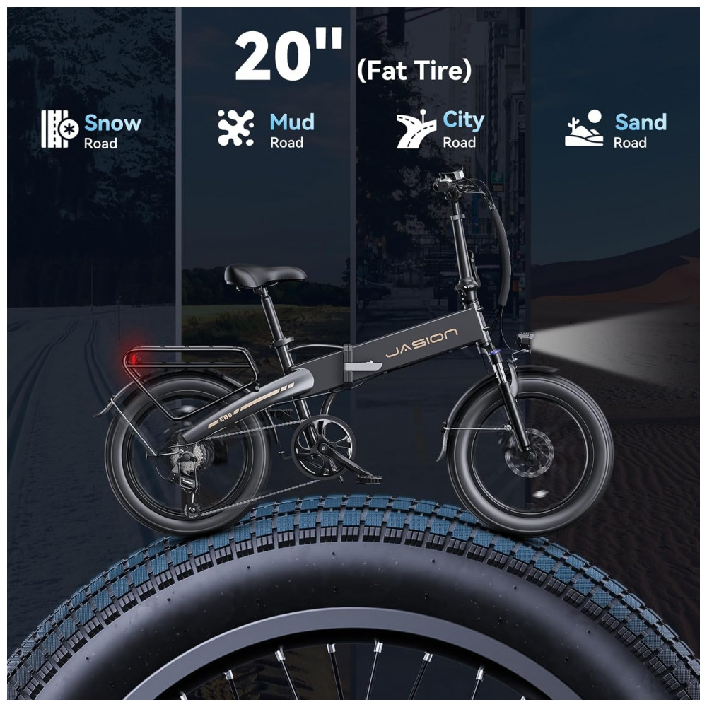 Bicicleta Elétrica Dobrável Jasion EB6 Preta com Cesta Dianteira 1000W Motor Brushless Bateria Removível 48V 375Wh Pneus 20″ Fat Tire 7 Marchas 110V