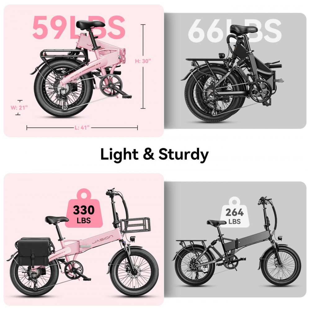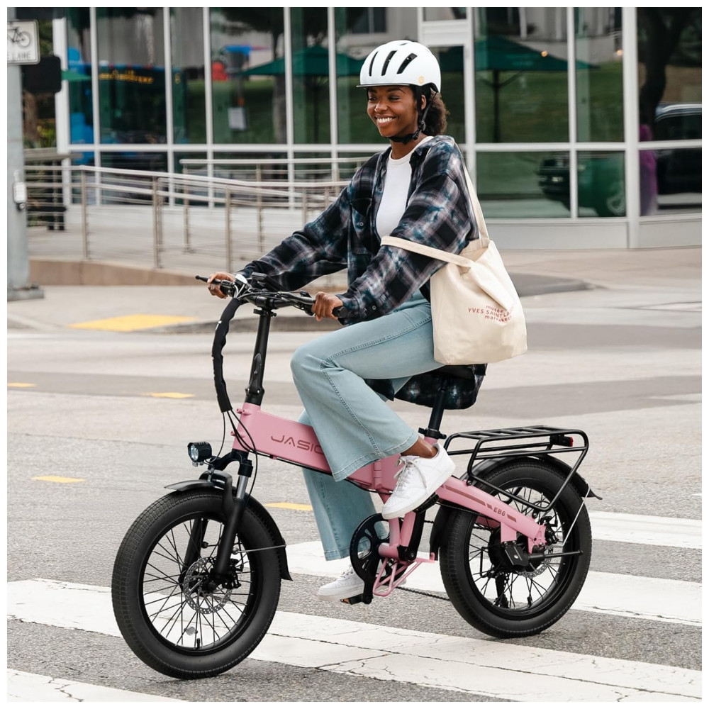 Bicicleta Elétrica Dobrável Jasion EB6 Rosa Kit com 2 Unidades 1000W Motor Brushless Bateria Embutida Removível 48V 375Wh Pneus 20″ Fat Tire 7 Marchas 110V