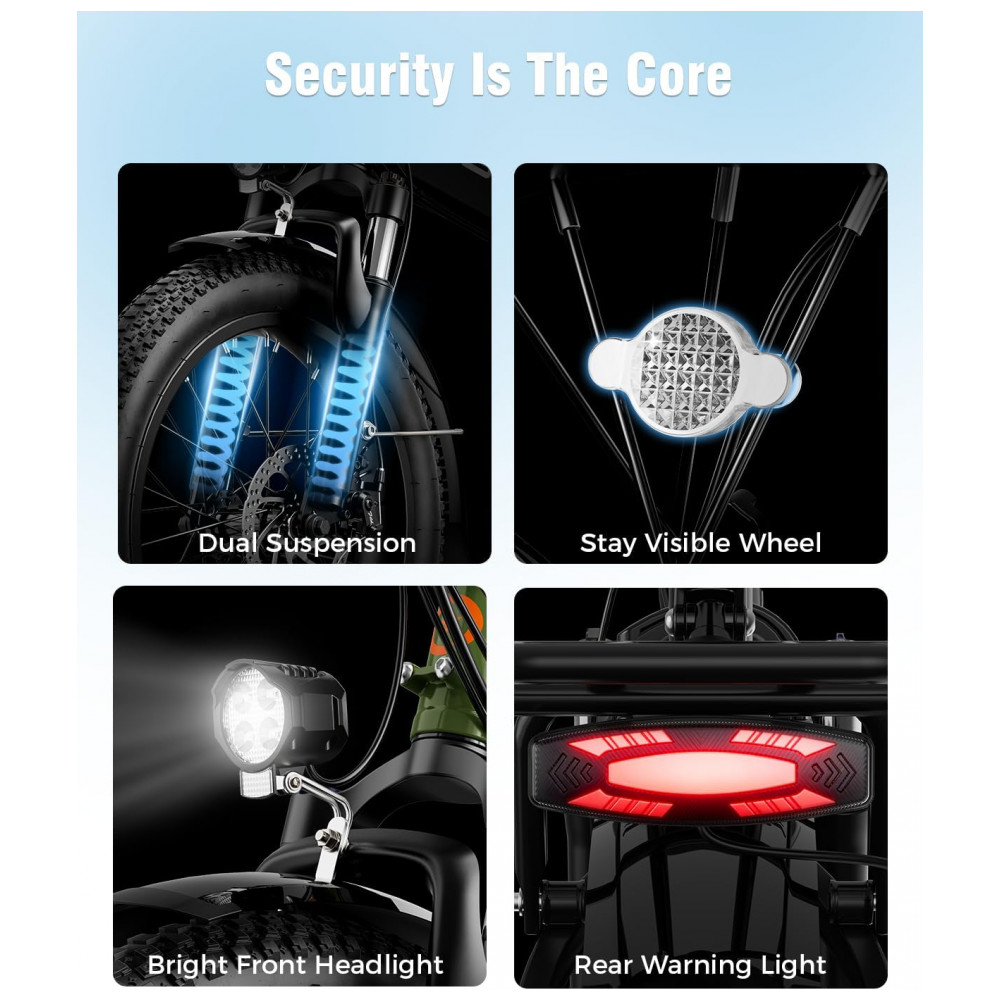 A bicicleta elétrica dobrável Jasion EB7 preta carvão é uma e-bike compacta com pneus largos 20×3, voltada para uso adulto em deslocamentos urbanos, passeios em parques e trechos leves em areia, praia e trilhas simples. O quadro dobrável, em combinação com a suspensão dianteira e traseira e os pneus fat, aumenta a estabilidade e a absorção de impactos em pavimento irregular, guias, ciclovias e caminhos com pequenas imperfeições.