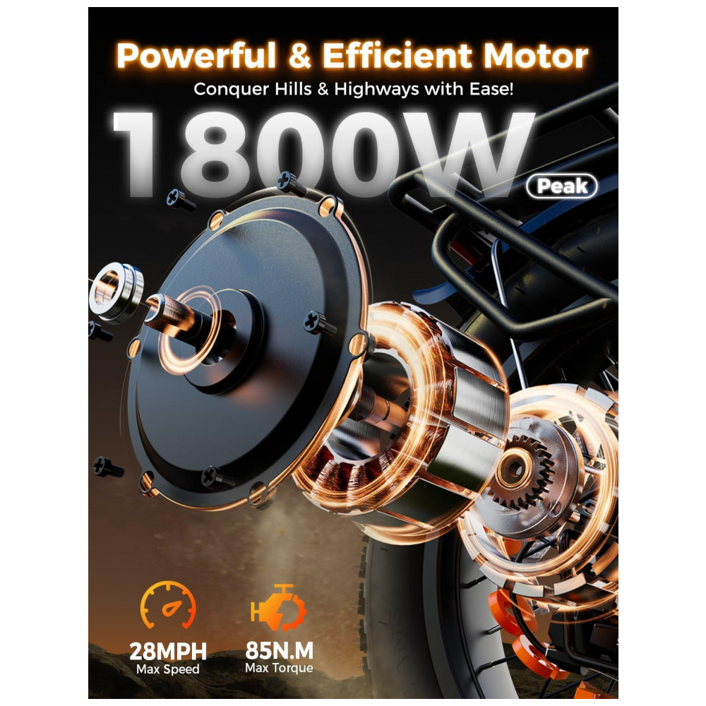 A bicicleta elétrica dobrável Jasion Hunter Pro marrom deserto é indicada para uso adulto em deslocamentos urbanos e trilhas leves, combinando quadro em alumínio com pneus largos 20″ x 4,0″ para maior estabilidade e tração em diferentes tipos de terreno. O motor traseiro brushless com potência nominal de 1000W e pico de 1800W oferece boa capacidade de aceleração e suporte em subidas, permitindo alcançar velocidades em torno de 48 km/h, conforme as condições de uso.