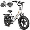 Bicicleta elétrica dobrável Jasion X-Hunter ST branca com cesto traseiro pneus 20×4 motor 750W pico 1400W bateria 48V 13Ah 70 km 110V