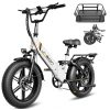 Os pneus fat 20 x 4, com construção resistente a furos, ampliam a área de contato com o solo, garantindo tração em superfícies como areia, neve, cascalho, terra compacta e pavimento. O quadro dobrável em alumínio facilita o transporte em porta‑malas e o armazenamento em espaços reduzidos, com peso em torno de 32 kg e capacidade de carga máxima próxima de 181 kg, considerando condutor e carga instalada.