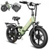 Bicicleta elétrica dobrável Jasion X-Hunter ST verde com cesto traseiro pneus 20×4 motor 750W pico 1400W bateria 48V 13Ah 70 km 110V
