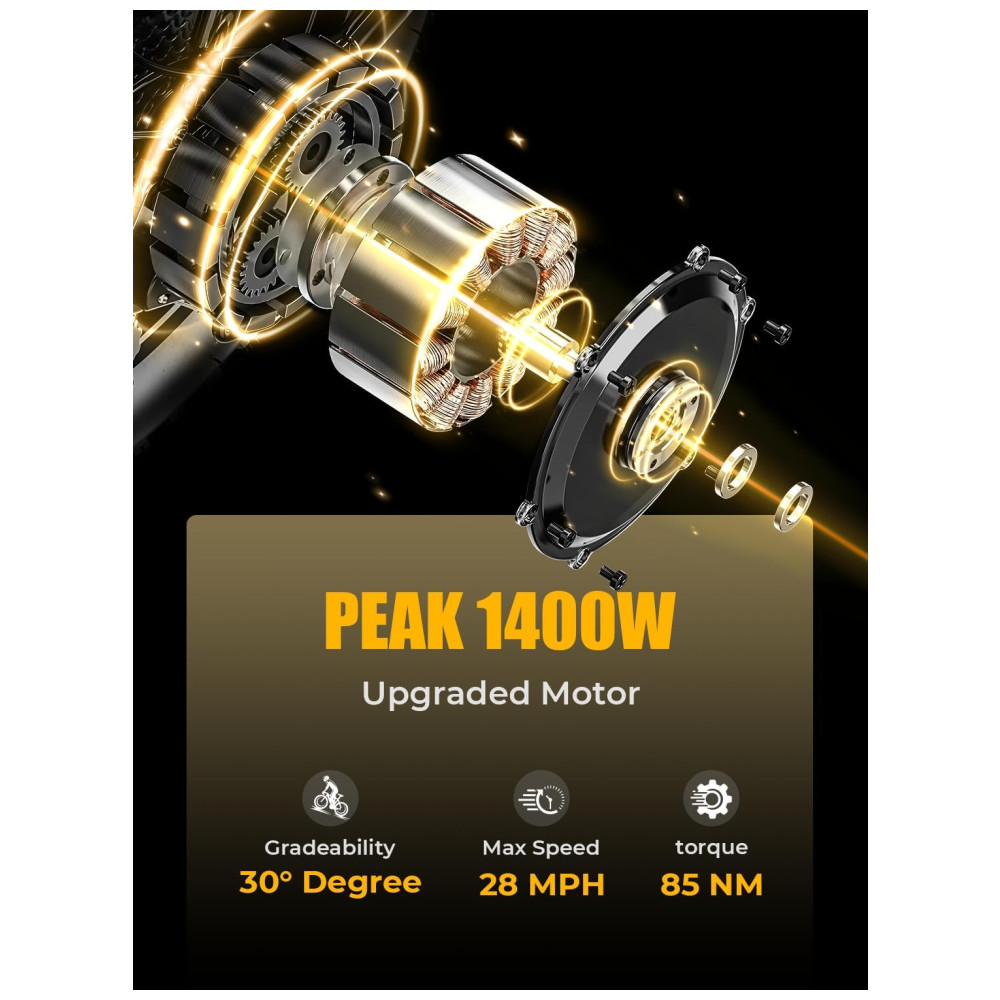 EXCELENTE DESEMPENHO DE CONDUÇÃO Personalize seu desempenho de condução com 3 modos de condução e marchas Shimano de 7 velocidades. Os freios a disco duplo perfeitos e o sistema de iluminação protegem totalmente sua segurança.