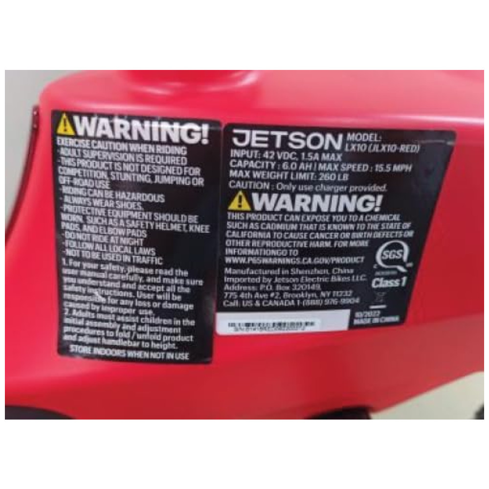 Bicicleta Elétrica Dobrável para Adultos Velocidade Máxima 24km h 110V 250W Jetson LX10 Vermelha