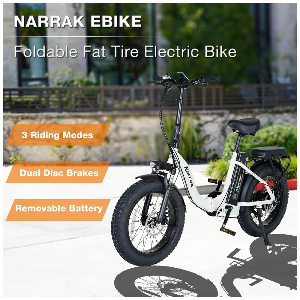 【Companheira Versátil para Aventuras】A Bicicleta Elétrica Dobrável Narrak com Pneus Grossos se destaca por combinar durabilidade off-road com a praticidade de ser dobrável, tornando-a um destaque no ciclismo elétrico. Ideal para aventuras em trailers, acampamentos, trilhas e passeios na praia ou calçadão, ela foi projetada para enfrentar qualquer terreno e é compacta o suficiente para caber em seu carro ou caminhão, garantindo uma configuração rápida para explorações sem fim.