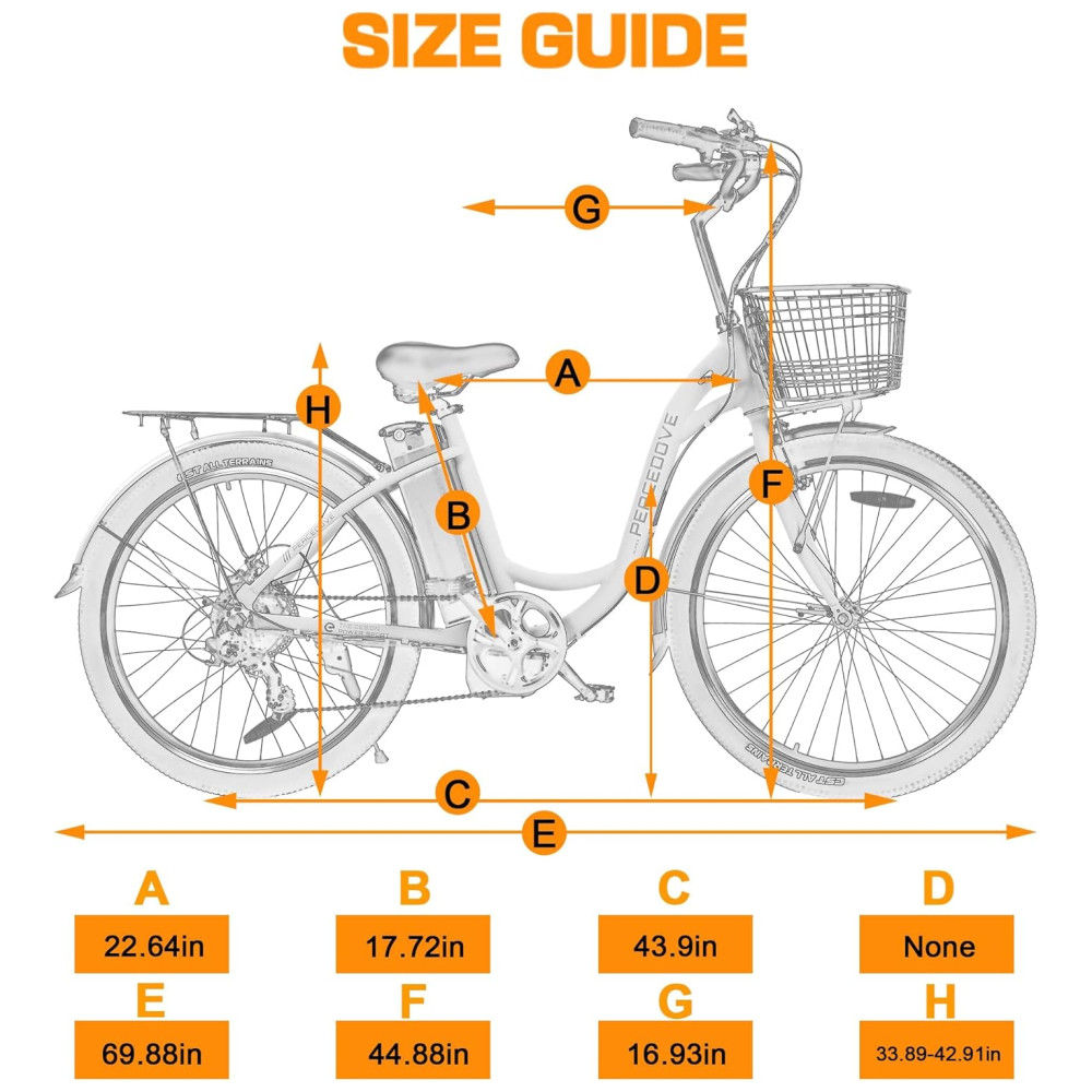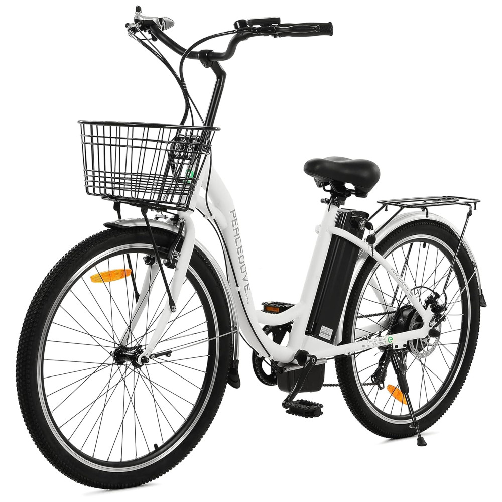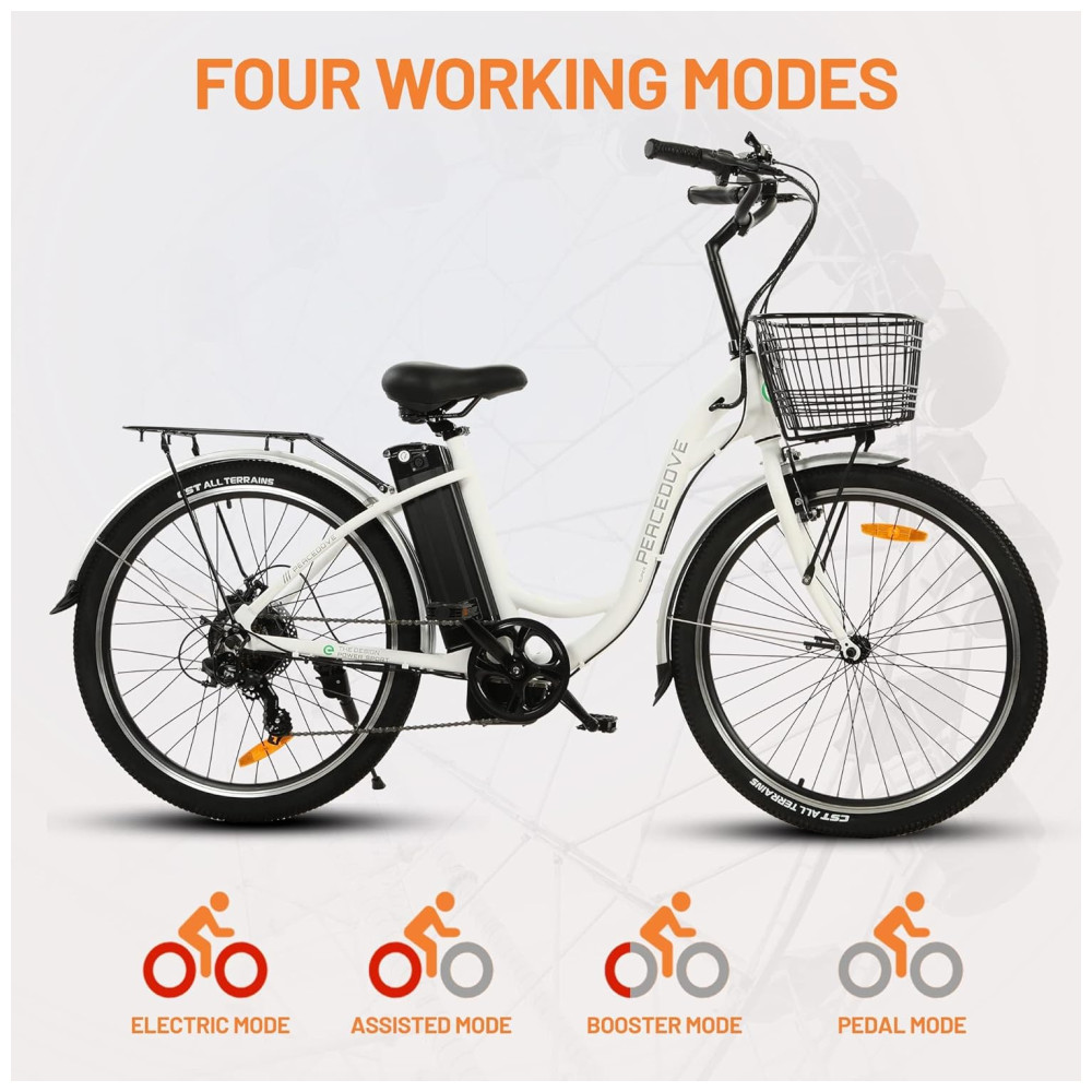 MOTOR POTENTE DE 350 W – Quando a e-bike urbana de 350 W está funcionando, ela faz você se sentir como uma verdadeira pomba da paz voando tranquila e suavemente pela estrada, como um brisa. Aproveite a felicidade que a natureza lhe traz. Força motriz forte, mas constante, sem sensação de pausa, o que melhora a experiência agradável de pedalar.