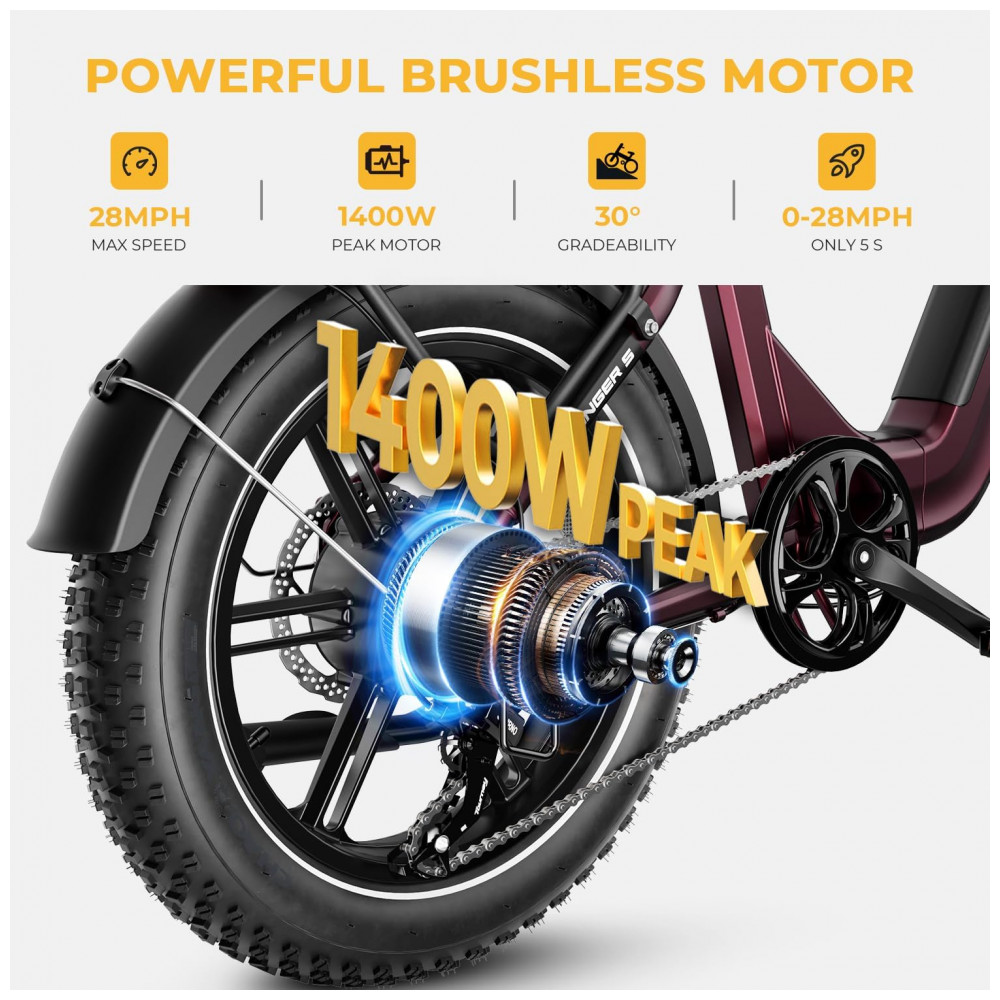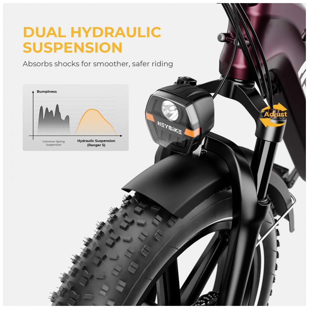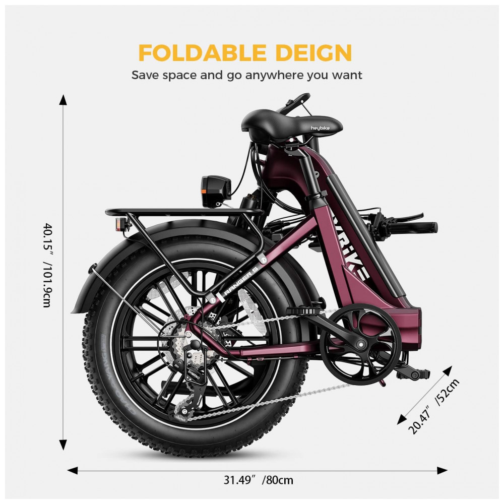 Bicicleta Elétrica Heybike Ranger S para Adultos Dobrável com Motor de Pico de 1400W Ebike Pneu Gordo 20 x 4.0 Bicicleta Elétrica Passo a Passo