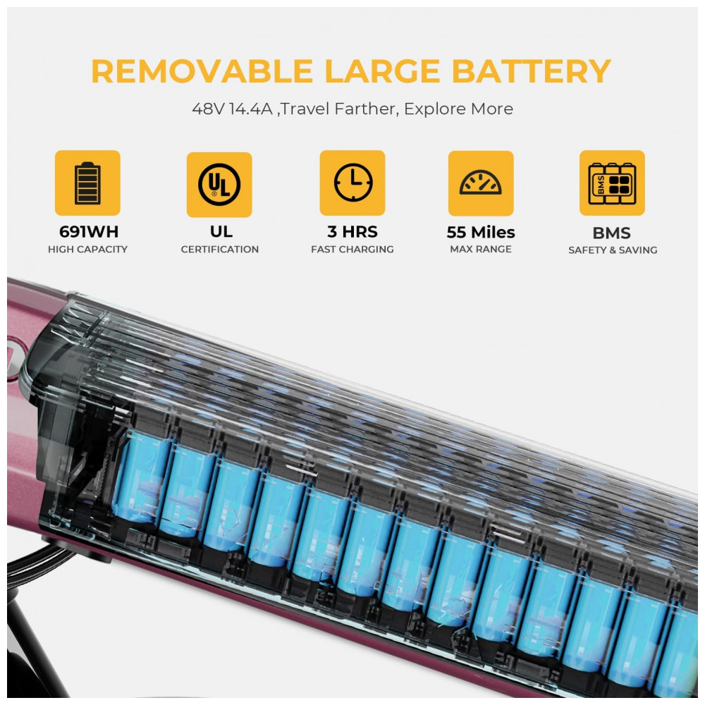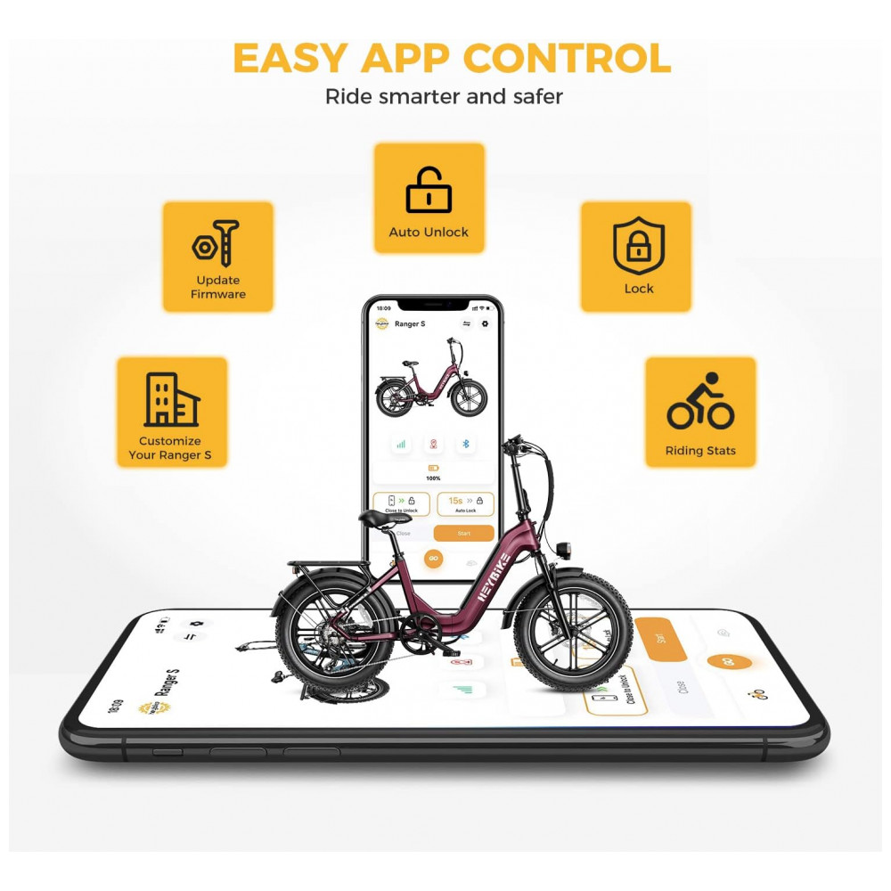 A poderosa bicicleta elétrica Heybike Ranger S para adultos é equipada com um potente motor sem escovas de 750 W e pico de 1400 W que sobe facilmente encostas de 30 graus e atinge uma velocidade máxima de 28 MPH. Possui uma bateria removível de 720 WH, que cobre uma distância máxima de até 55 milhas com uma única carga. Tecnologia de carregamento rápido de 4A permite completar uma carga em apenas 3-4 horas. O quadro resistente de liga de alumínio mantém a segurança e estabilidade, tornando a experiência de pilotagem segura e confiável. O suporte traseiro resistente tem grande capacidade de carga, permitindo transportar o que você precisar. Perfeito para deslocamentos, acampamentos ou aventuras de fim de semana. Design dobrável e passo a passo para facilitar o transporte e armazenamento. O design compacto permite guardá-la facilmente no porta-malas, RV. O design passo a passo é fácil de subir e descer para pilotos de todas as idades e habilidades. O design moderno chama a atenção e você se destacará da multidão com esta bicicleta elétrica. O aplicativo Heybike conta com recursos de antifurto, firmware atualizado, configuração personalizada, estatísticas de pilotagem, travamento/desbloqueio automático, permitindo ligar/desligar a ebike ao se aproximar ou afastar da bicicleta, personalizando seu Ranger S e mantendo sua e-bike segura. O visor LCD intuitivo mostra os principais dados, velocidade, nível da bateria, nível de PAS, etc. O painel de controle fácil permite alterar os 4 modos de funcionamento e as 5 velocidades durante o passeio. Fique visível, permaneça seguro. Esta ebike Ranger S para adultos possui luzes inteligentes que se acendem automaticamente em condições de pouca luz, iluminando sua jornada. Os indicadores de direção dianteiros e traseiros atualizados mostram claramente suas intenções, enquanto a luz traseira intensifica quando você para, alertando os veículos atrás e aumentando a segurança.