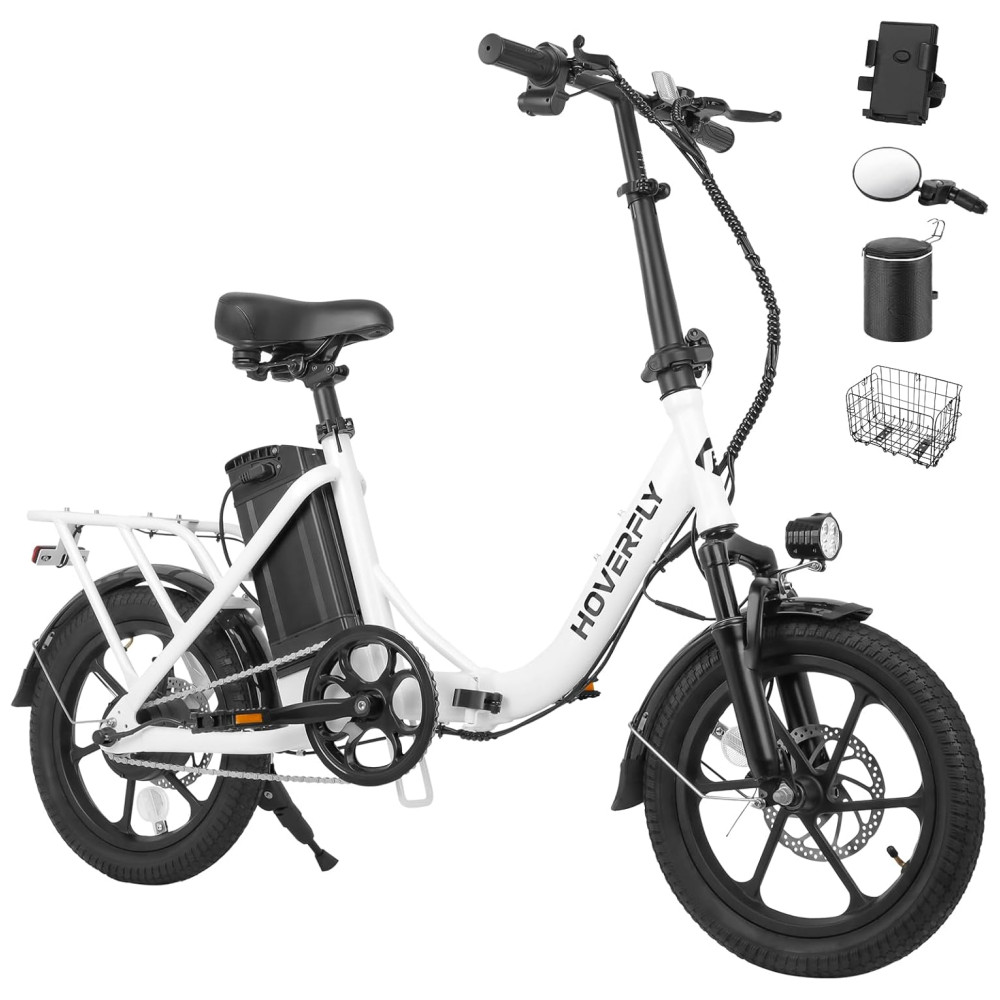 Bicicleta Elétrica Dobrável Hoverfly 500W de Pico 25 km/h 45 km de Alcance Rodas 16″ Bateria Removível Suspensão Dupla Freios a Disco e Certificação UL2849 BRANCA