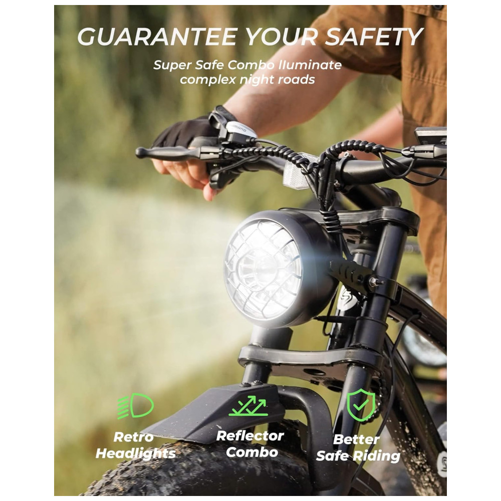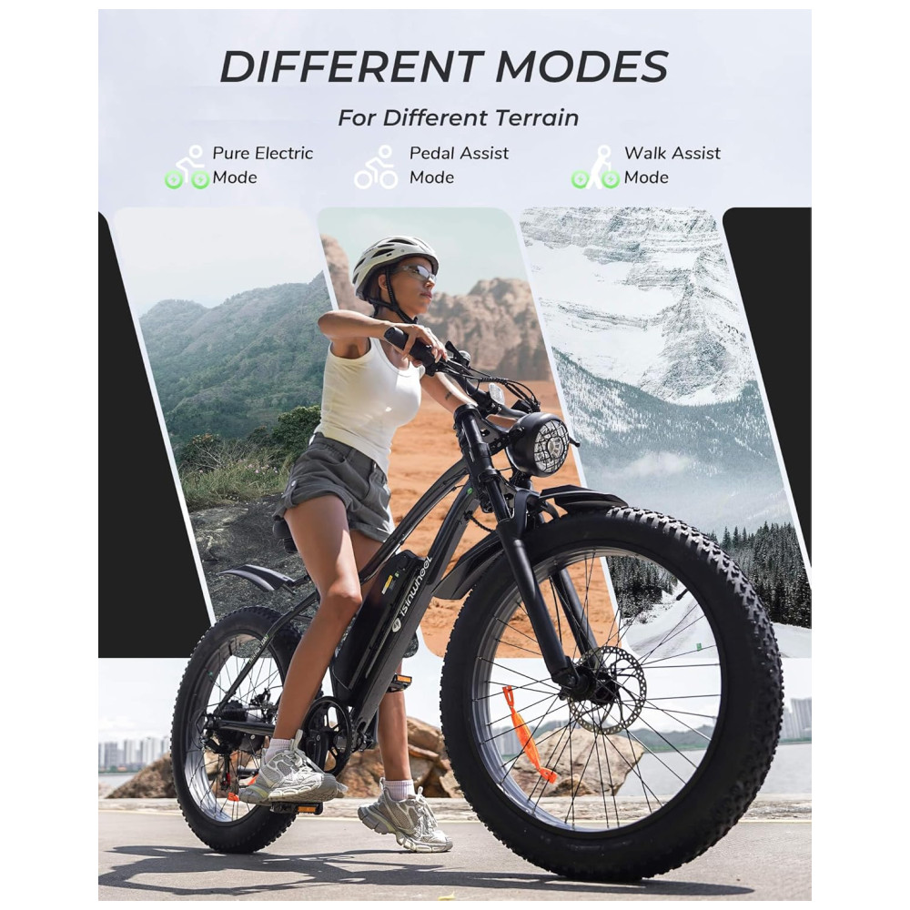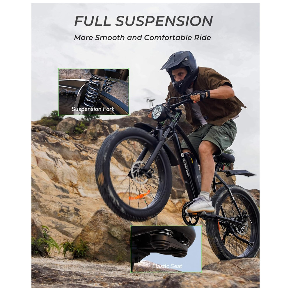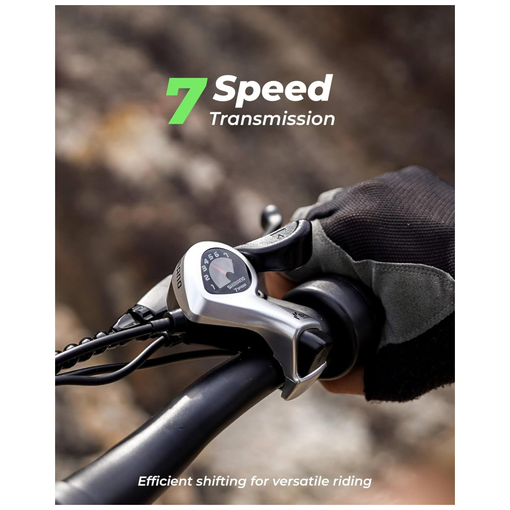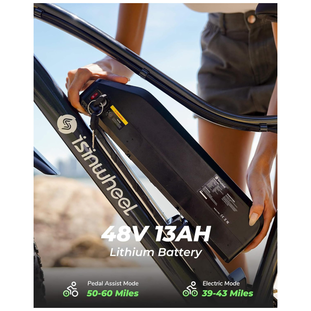 Experimente uma potência instantânea sem igual com a isinwheel M10 PlusPro, uma bicicleta elétrica para adultos. Seu motor de pico de 1000W oferece aceleração emocionante, atingindo 45km/h em 3.8 segundos. Navegue pelas ruas da cidade, incorpore-se ao tráfego ou conquiste colinas facilmente. Ideal para deslocamentos urbanos ou terrenos desafiadores, a bicicleta elétrica para adultos garante jornadas confiantes e rápidas. Após o limite de velocidade ser removido, alcança 45km/h. Imagine aventuras de fim de semana sem preocupações com energia com nossa e-bike. A bateria removível de 48V 13Ah oferece 80 km no modo de aceleração e 113 km no modo de assistência. Desfrute de uma pedalada suave com nossa bicicleta elétrica de pneu gordo. A suspensão dianteira e traseira absorve facilmente solavancos e terrenos acidentados. Deslize sobre buracos na cidade ou estradas de campo desiguais, sentindo o conforto da sela macia e larga. Seja para se deslocar diariamente ou para aventuras nos fins de semana, esta bicicleta de montanha elétrica garante uma pedalada agradável e amortecida. Personalize sua excursão de bicicleta elétrica para adultos com 5 modos de bicicleta, 7 marchas e 5 níveis de assistência, adaptando-se facilmente a paisagens diversas e estilos de pedalada. Pedale com confiança nesta e-bike para adultos, com freios a disco dianteiro e traseiro para uma potência de frenagem responsiva em qualquer situação. Seja no trânsito da cidade ou descendo colinas, esses freios garantem controle preciso e segurança. As certificações CFR1512 e UL2849 garantem ainda mais tranquilidade em cada pedalada.