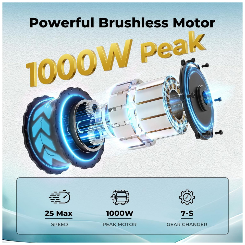 Potência de pico do motor: 1000W