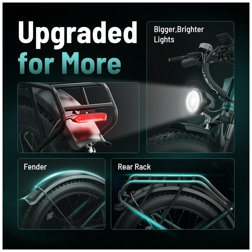 Desperte sua paixão pela aventura com a Bicicleta Elétrica Jasion EB5 MAX, equipada com um poderoso motor de pico de 1500W, atingindo velocidades acima de 45km/h com facilidade. Supere subidas íngremes sem esforço, graças às suas robustas capacidades de escalada. Com uma bateria de 48V 15Ah, você pode percorrer até 104km com assistência e 56km apenas com o acelerador. Seu design removível e travável garante conveniência e segurança, seja carregando em casa ou em movimento. A tela colorida vibrante oferece clareza e conveniência, exibindo estatísticas em tempo real como velocidade, quilometragem e nível da bateria. Com controle de cruzeiro embutido e painel protegido por senha, suas viagens de longa distância se tornam mais fáceis e seguras. Com luzes dianteiras e traseiras maiores e mais brilhantes do que as bicicletas de montanha convencionais, esse modelo proporciona melhor visibilidade e segurança em condições de pouca luz. Com para-lamas e bagageiro traseiro inclusos, você está pronto para encarar diversas situações, seja na cidade ou na trilha, com conforto e estabilidade garantidos.