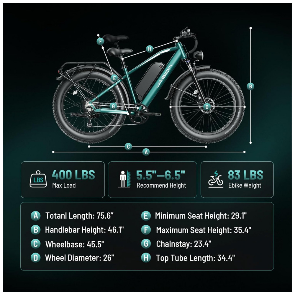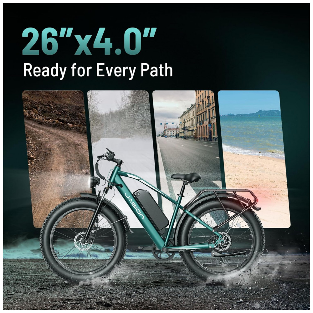 Bicicleta Elétrica Jasion EB5 MAX para Adultos com Motor de Pico de 1500W Bateria de 48V 15Ah 720Wh Bicicleta Elétrica de Montanha com Pneu Gordo 26