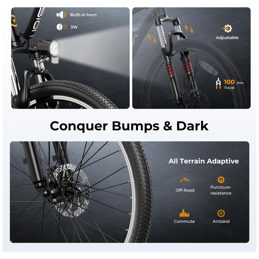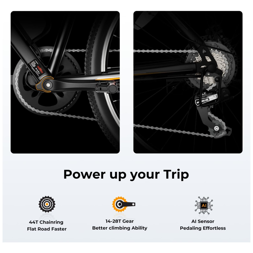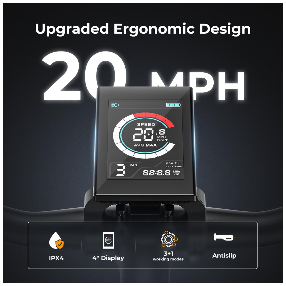 A Jasion EB5 é uma bicicleta elétrica robusta e elegante, perfeita para deslocamentos urbanos rápidos e sem esforço. Com um motor de pico de 500W, alcança até 20 mph facilmente. Seu design leve e resistente, pneus fortes de 26 polegadas, pedal assistido, 7 velocidades e bateria removível de 360Wh proporcionam uma experiência de condução confortável e conveniente. Seu display LCD atualizado oferece dados de viagem, modos de assistência personalizáveis e brilho ajustável. A EB5 foi projetada pensando na vida urbana, tornando os trajetos diários mais rápidos e agradáveis.