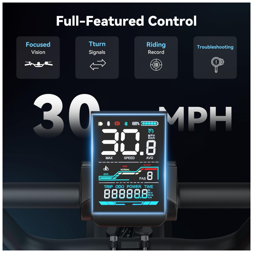 O sistema de propulsão utiliza motor elétrico brushless de 750W, com potência de pico em torno de 1500W, capaz de desenvolver até aproximadamente 48 km/h, dependendo do modo de assistência, peso do usuário e relevo. Há quatro modos de condução disponíveis: pedal assistido, modo totalmente elétrico via acelerador, pedalada sem assistência e modo cruzeiro, que mantém velocidade constante sem necessidade de acionamento contínuo.