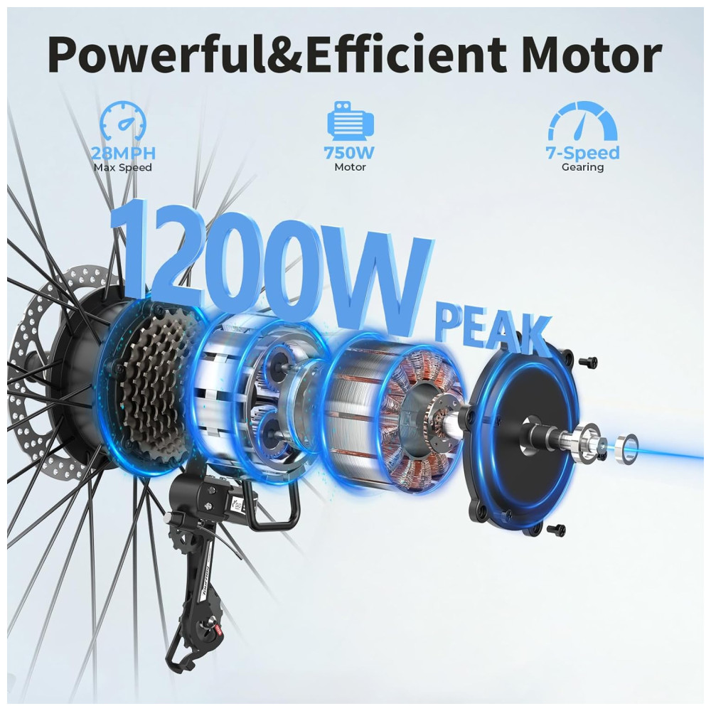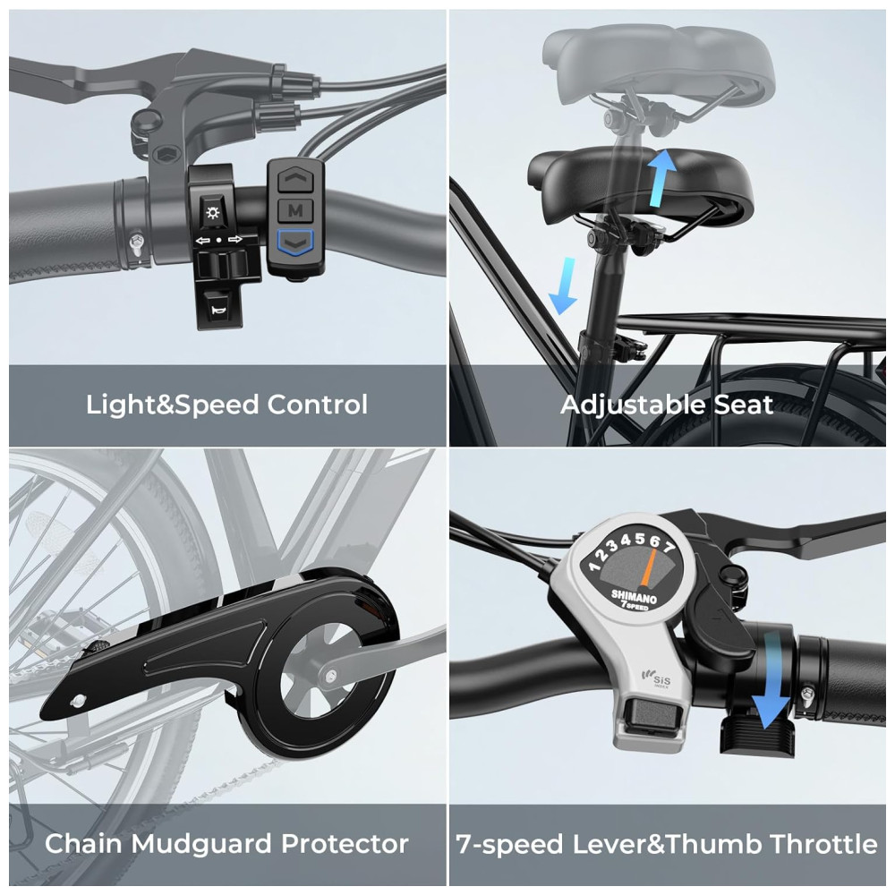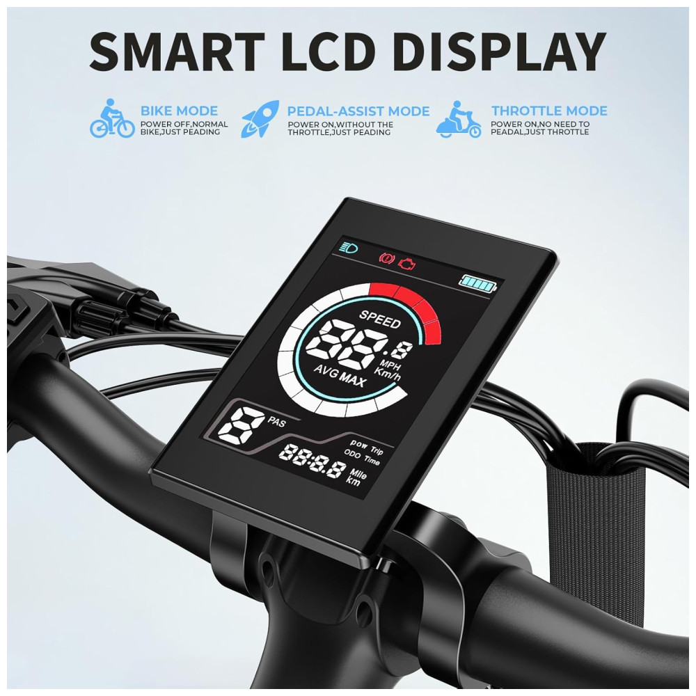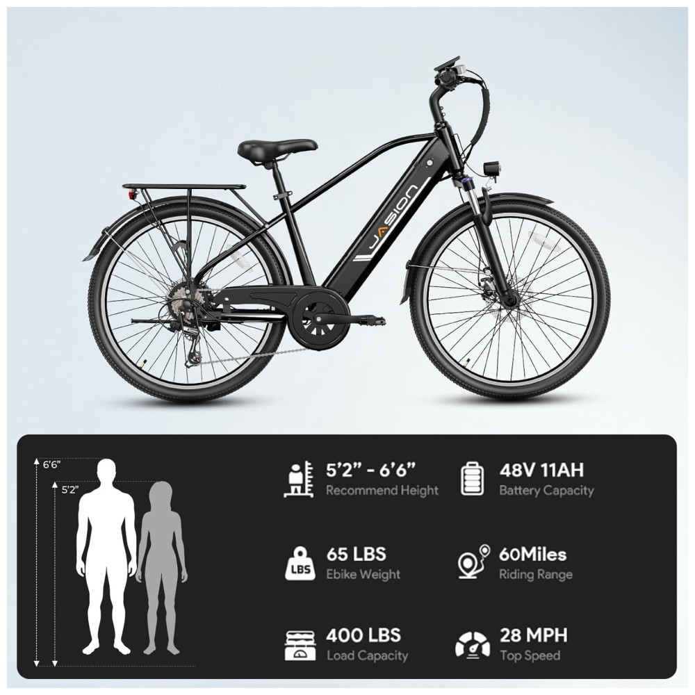 A bicicleta elétrica Jasion Roamer para adultos é equipada com um motor brushless de pico de 1200W, permitindo alcançar velocidades de até 45km/h. Com capacidade para encarar diversos tipos de terrenos como estradas, grama, areia ou montanha, essa e-bike urbana é a escolha perfeita para suas aventuras. O sistema de freio a disco mecânico dianteiro e traseiro oferece frenagens potentes e precisas, garantindo sua segurança em todos os momentos. A Roamer possui uma bateria removível de 528Wh, permitindo percorrer de 72 a 96km com uma única carga, atendendo suas necessidades de deslocamento diário ou lazer. O display LCD intuitivo exibe velocidade, nível de carga da bateria, assistência do pedal e distância percorrida. Com 7 marchas e três modos de pedalada, ela é ideal para longos trajetos. Além disso, conta com um sistema de iluminação completo, incluindo setas, luz de freio, luz traseira e frontal, aumentando sua segurança durante os percursos. Com 80% da montagem pré-instalada, essa e-bike oferece instalação simples e rápida, com instruções detalhadas para que você possa aproveitar a experiência de pedalar. Os pneus aro 26 garantem durabilidade e o garfo dianteiro com suspensão de 80mm proporciona conforto ao absorver impactos em estradas irregulares.