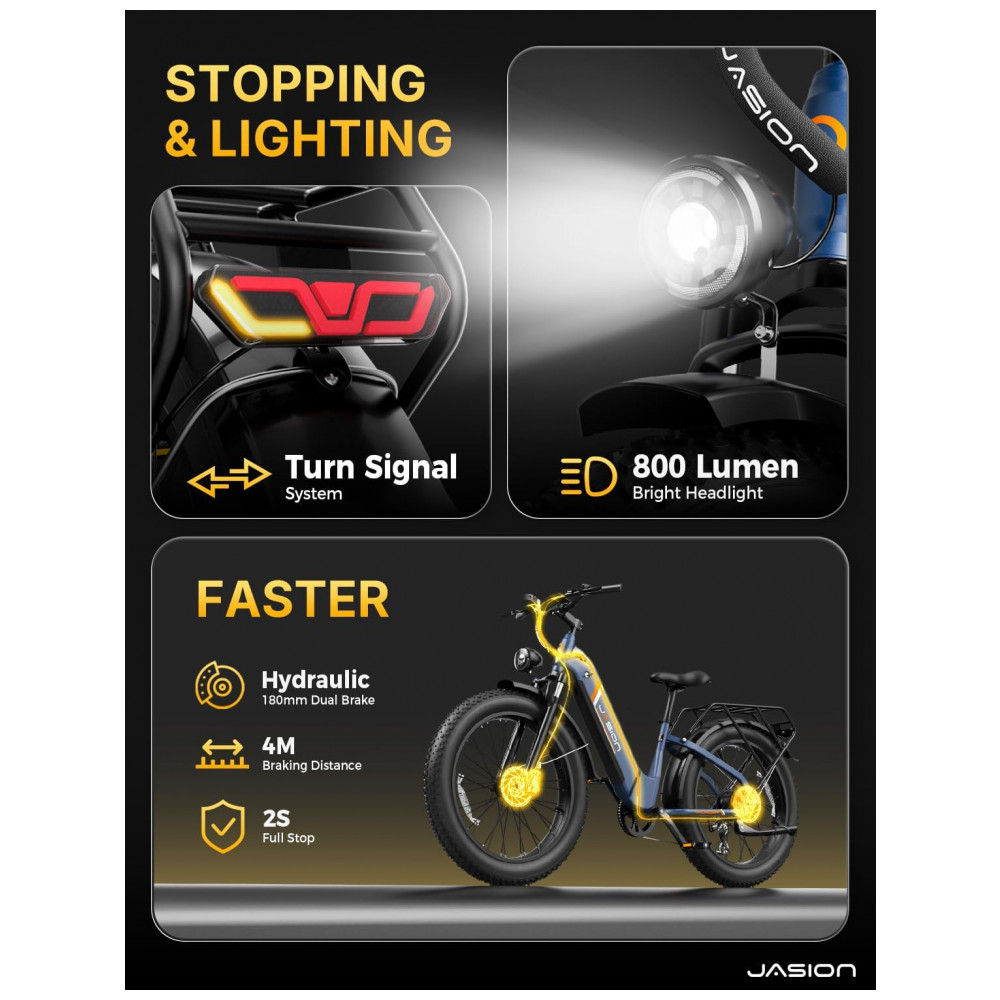 Bicicleta elétrica Jasion Thunder azul royal pneus 26×4 motor 750W nominal 1800W pico bateria 48V 18Ah 864Wh quadro alumínio 7 marchas 110V