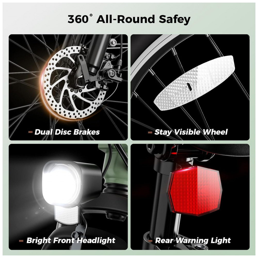 Conteúdo da embalagem: Bicicleta elétrica Jasion YC1 ST, bateria, farol dianteiro, kit de ferramentas, manual do usuário